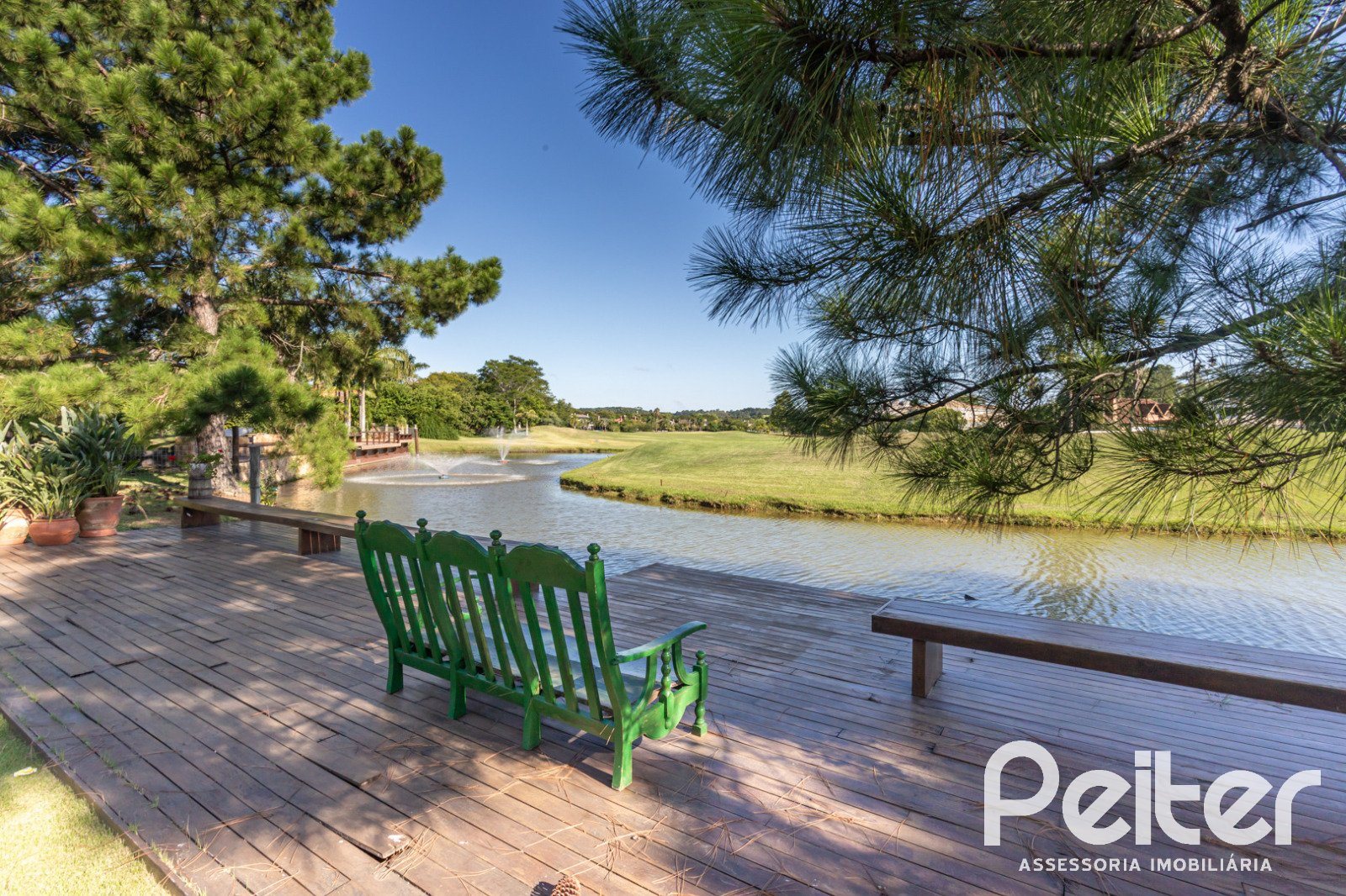 A área externa é um convite ao bem-estar, possui agradável varanda integrada ao pátio com piscina e uma vista deslumbrante para o lago e o campo de golfe, cenário perfeito para momentos de lazer e contemplação.