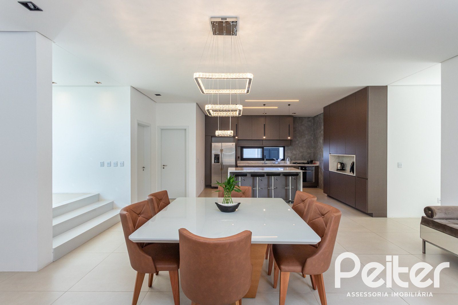 No 1° pavimento: charmoso hall de entrada, lavabo, amplo living com lareira, sala de jantar, cozinha em conceito aberto, espaço gourmet, banheiro social, área de serviço, gabinete e lindo pátio com piscina.