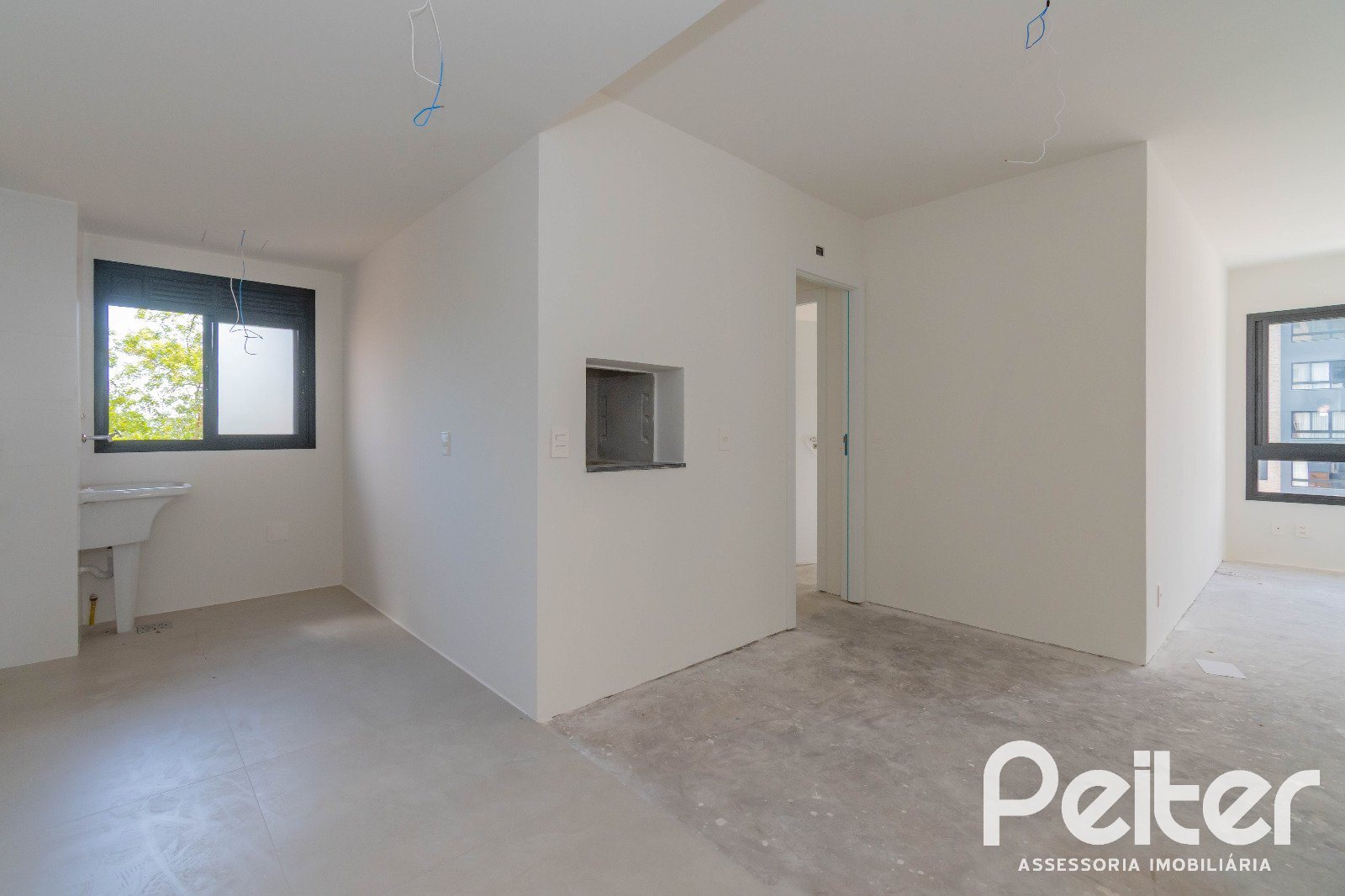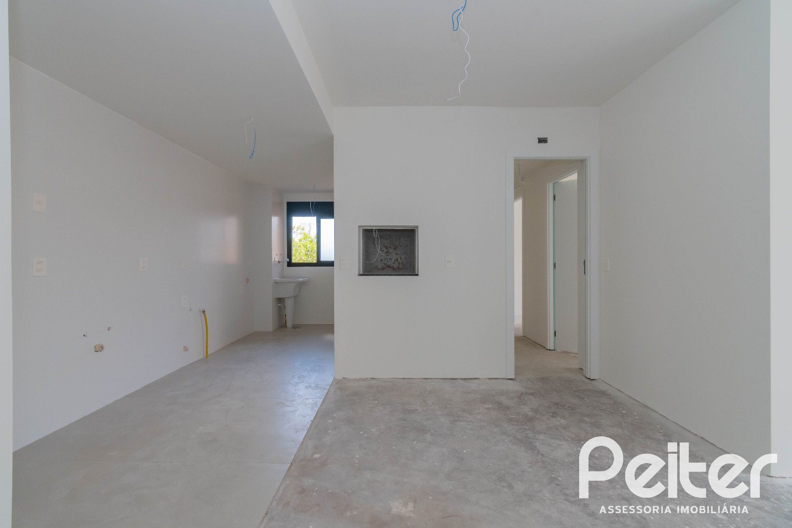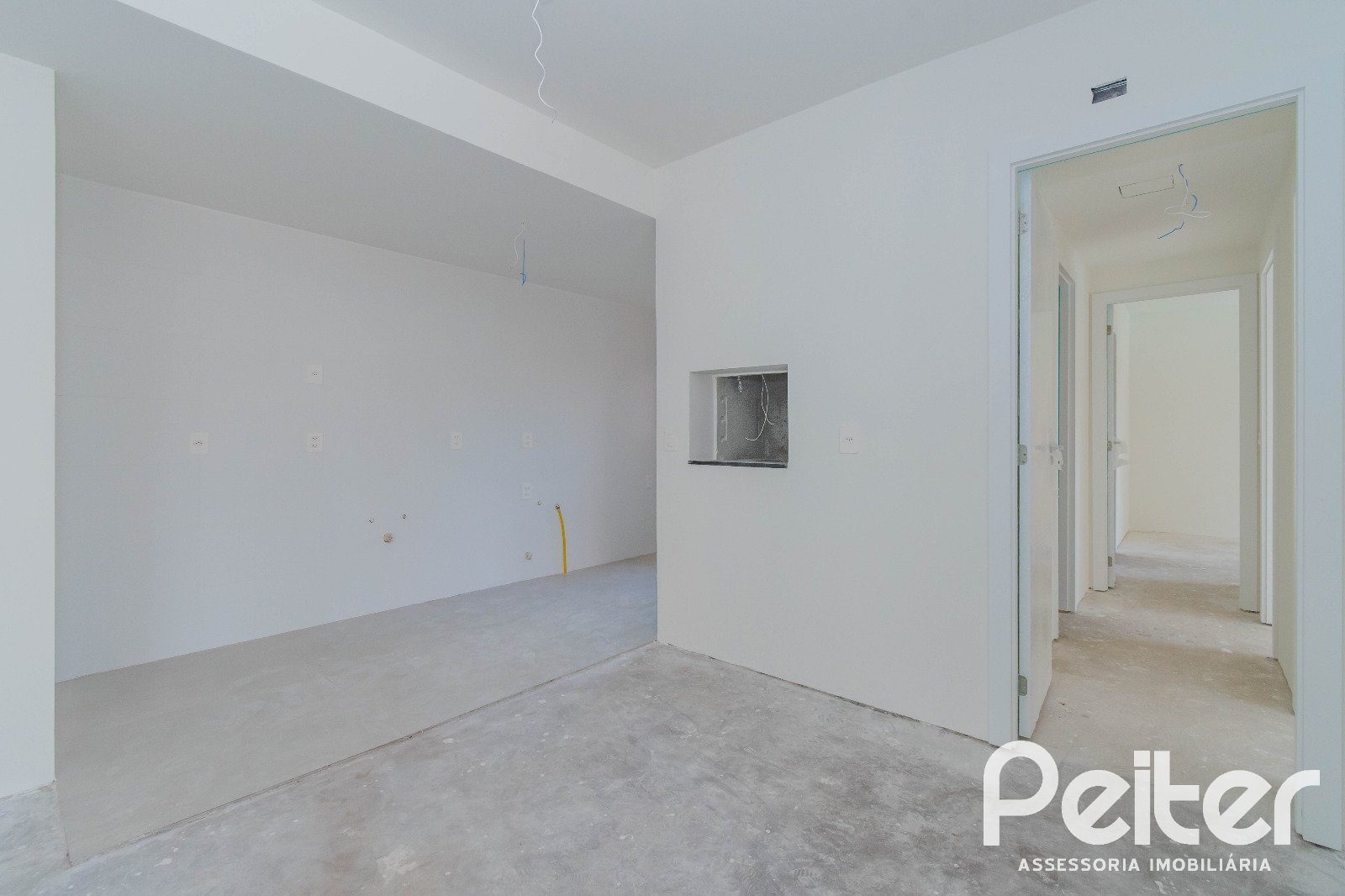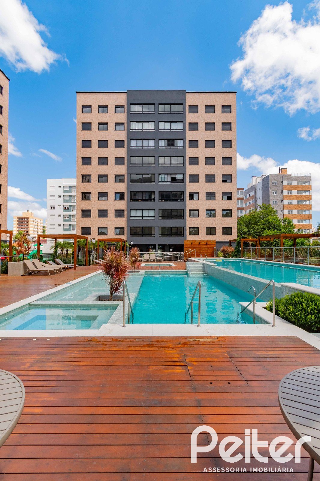 Apartamento com 92,43m² de área privativa, 03 dormitórios, sendo 01 suíte, amplo living para 02 ambientes, cozinha americana com churrasqueira, área de serviço e 02 vagas de garagem.