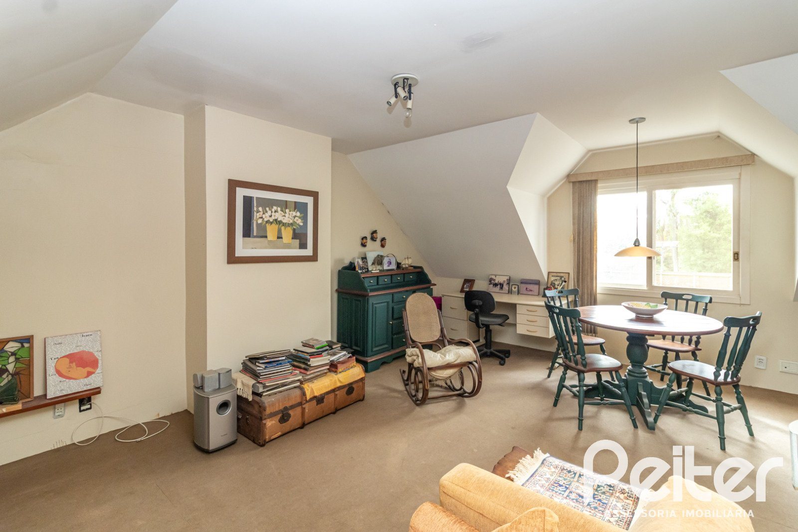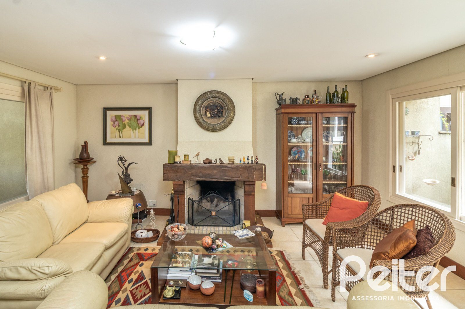 Living para 02 ambientes com lareira, copa-cozinha com churrasqueira, lavabo, pátio, área de serviço e banheiro auxiliar.