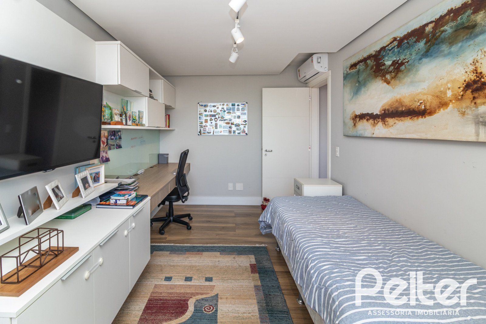 Possui 03 suítes, sendo 01 master, incrível e ampla sala bem iluminada, vista indescritível para o Rio Guaíba, sala integrando estar ao jantar e a cozinha, ampla churrasqueira, lavanderia, dependência de empregada, garagem com 03 vagas, depósito privativo, elevador social e de serviço.
