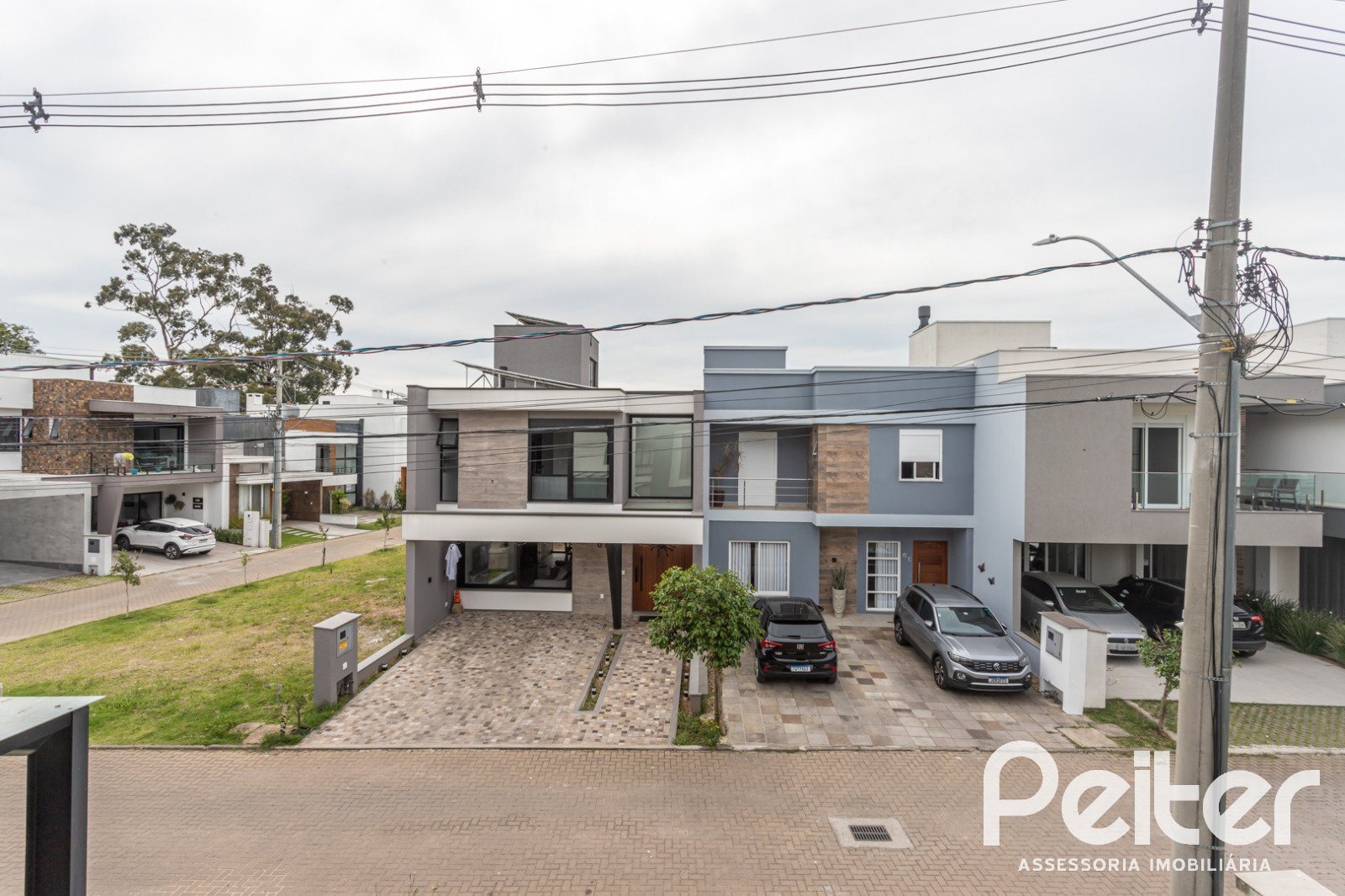 PEITER Imóveis vende excelente casa em condomínio, nova, 03 suítes, living para 03 ambientes, lavabo, cozinha conceito aberto, churrasqueira, área de serviço, pátio e 02 vagas de garagem.