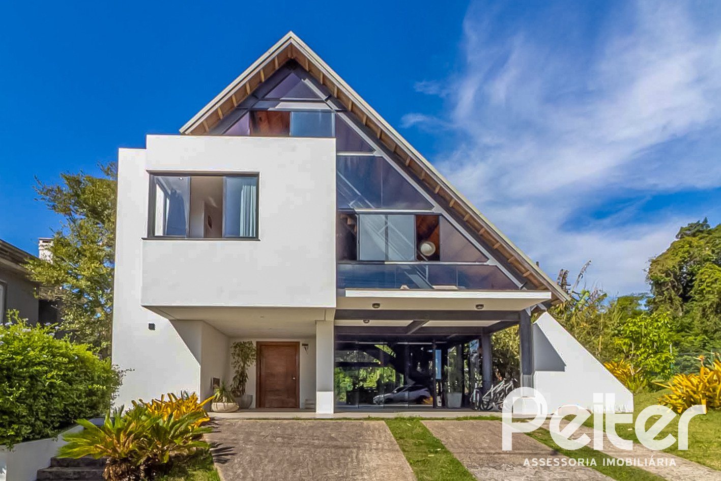 O projeto arquitetônico incorpora alta tecnologia, com estrutura em perfis ?I? de aço e concreto. O telhado é em madeira grápia, com grandes áreas envidraçadas em vidro temperado. O pé-direito é triplo, proporcionando sensação de amplitude, e há um amplo mezanino no terceiro andar, com vista para o Rio Guaíba na frente e para a mata da área de preservação permanente nos fundos.