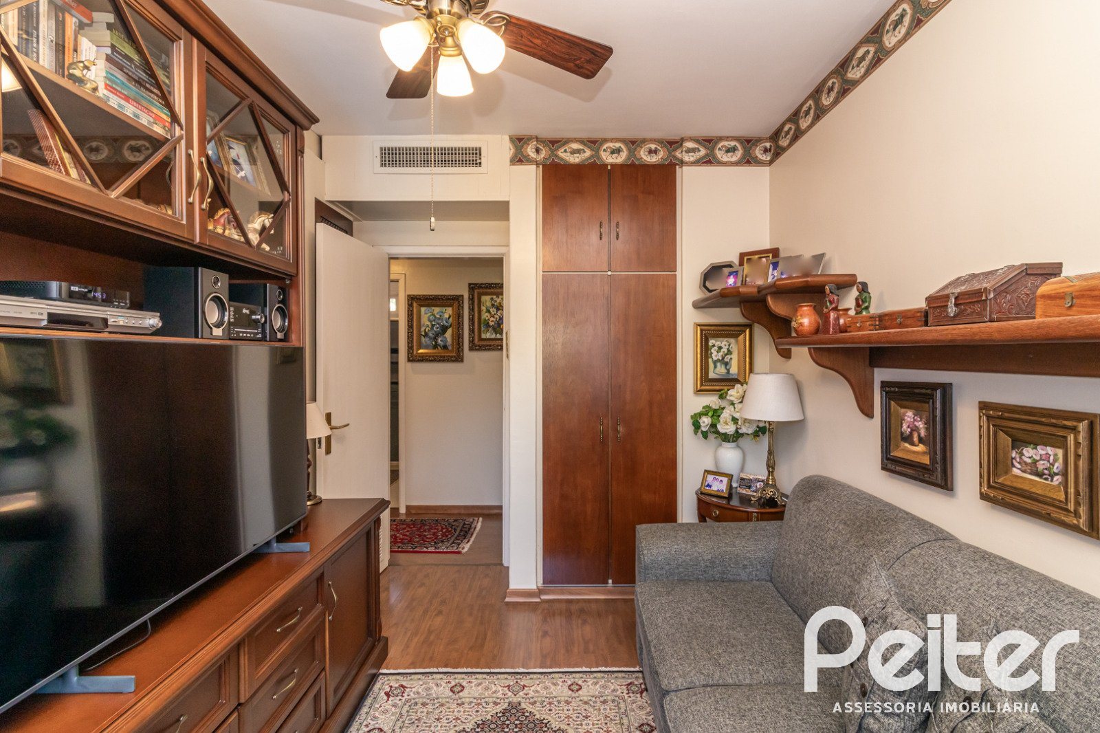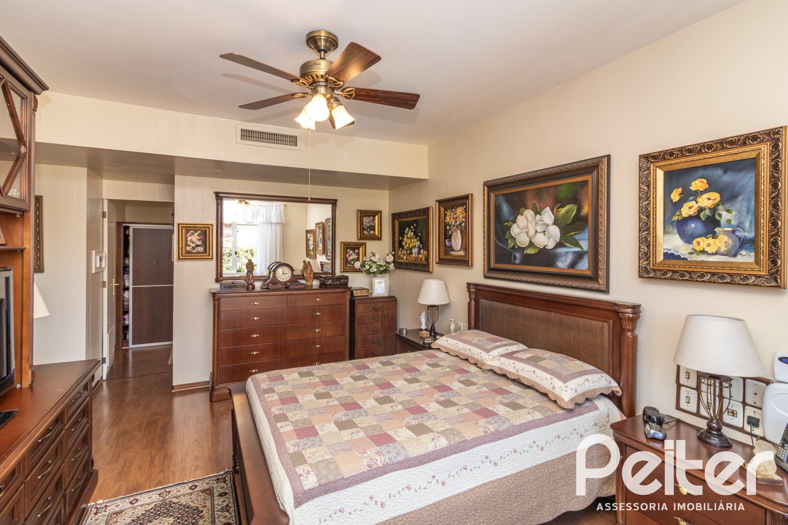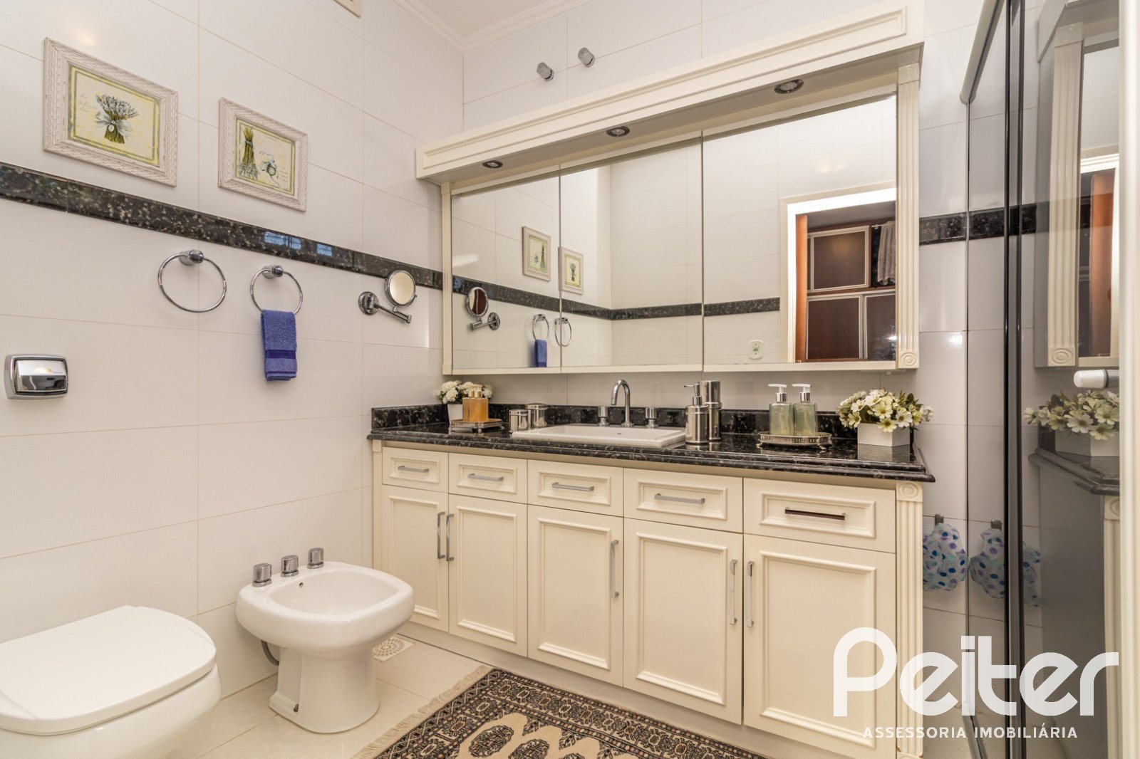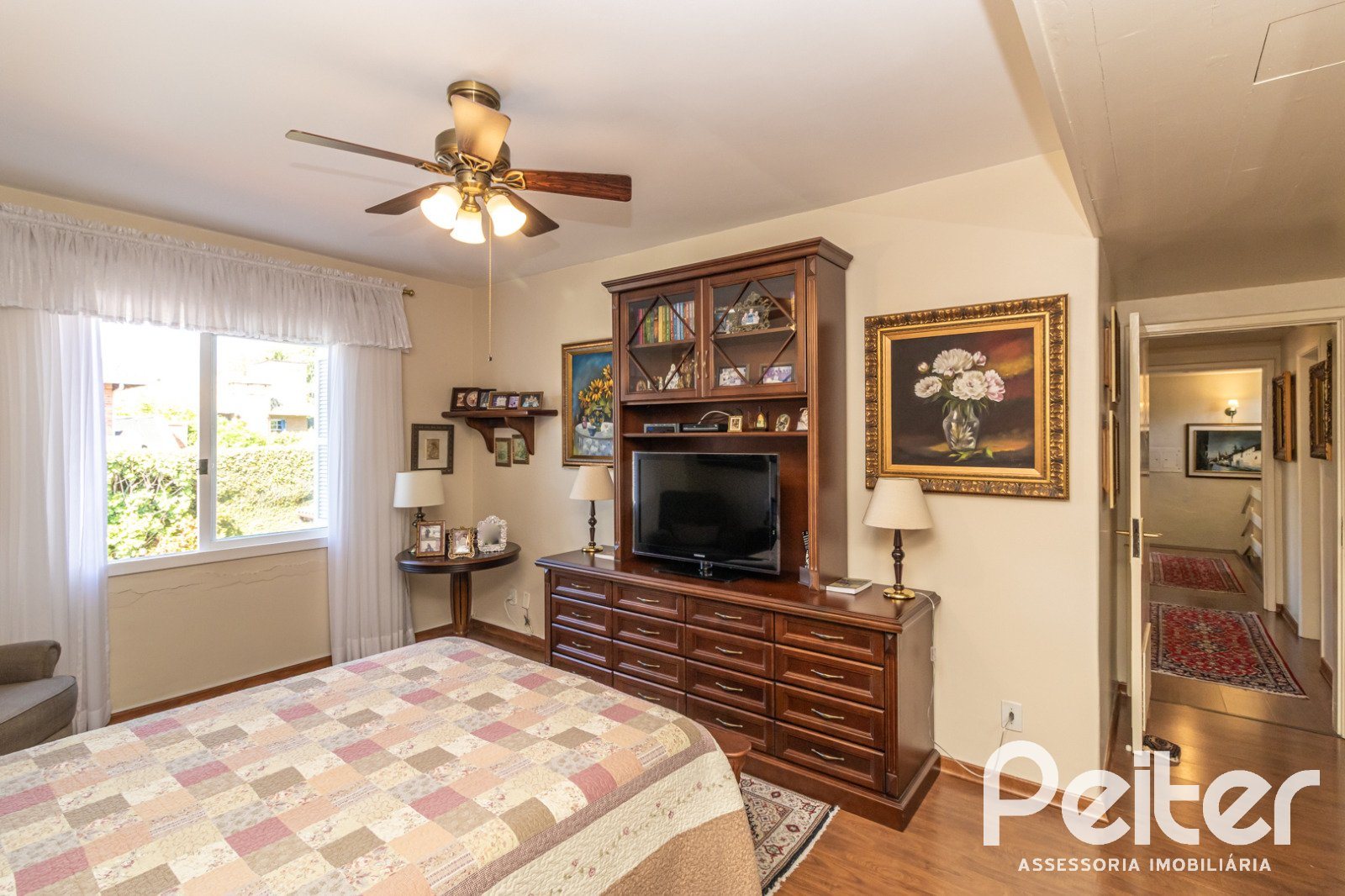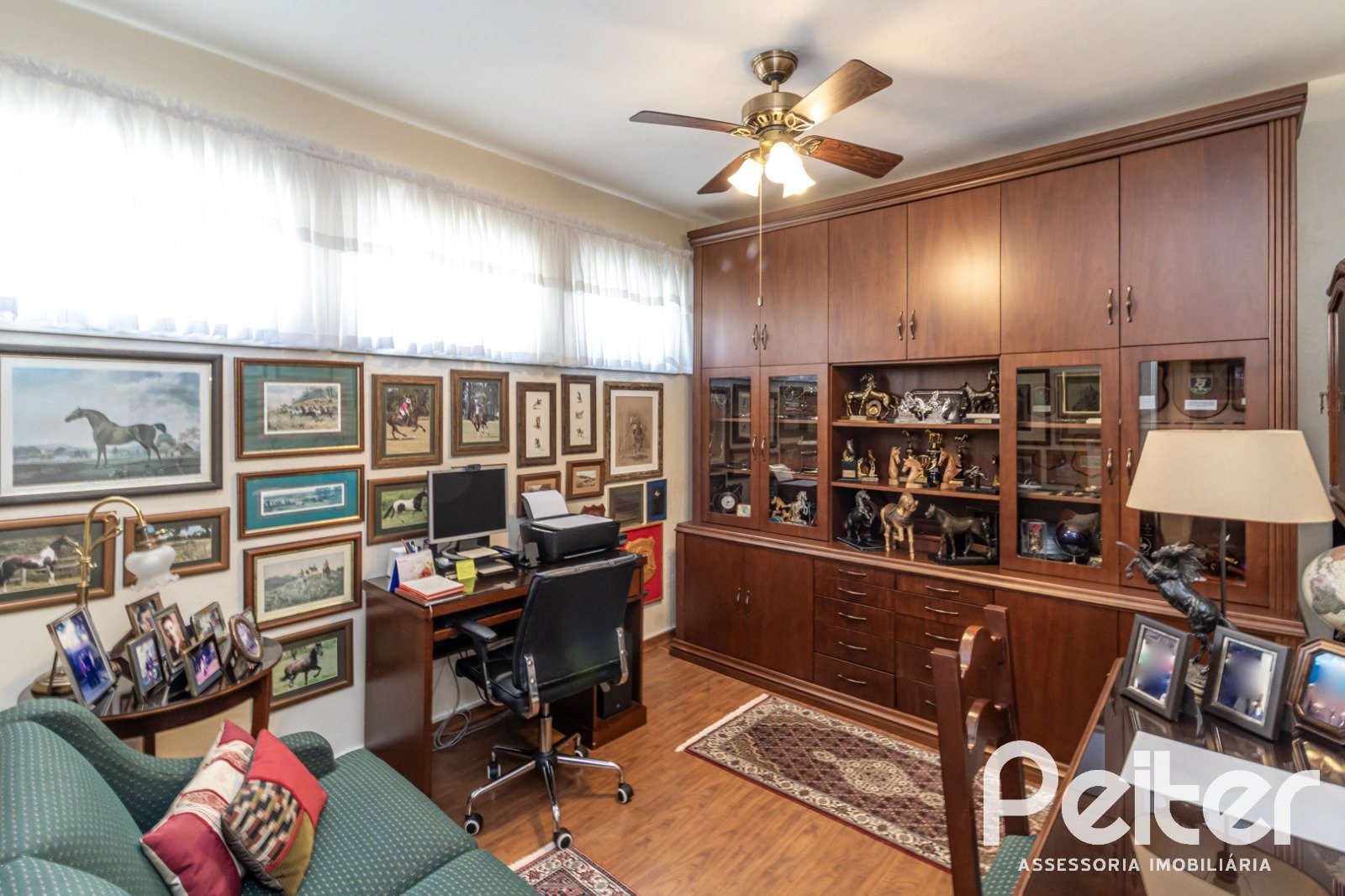 Possui 04 dormitórios, sendo 01 suíte com closet, banheiro social, living para 03 ambientes com lareira, varanda, gabinete, lavabo, sala de jantar, copa-cozinha, espaço gourmet com churrasqueira, atelier, banheiro auxiliar e lavanderia.