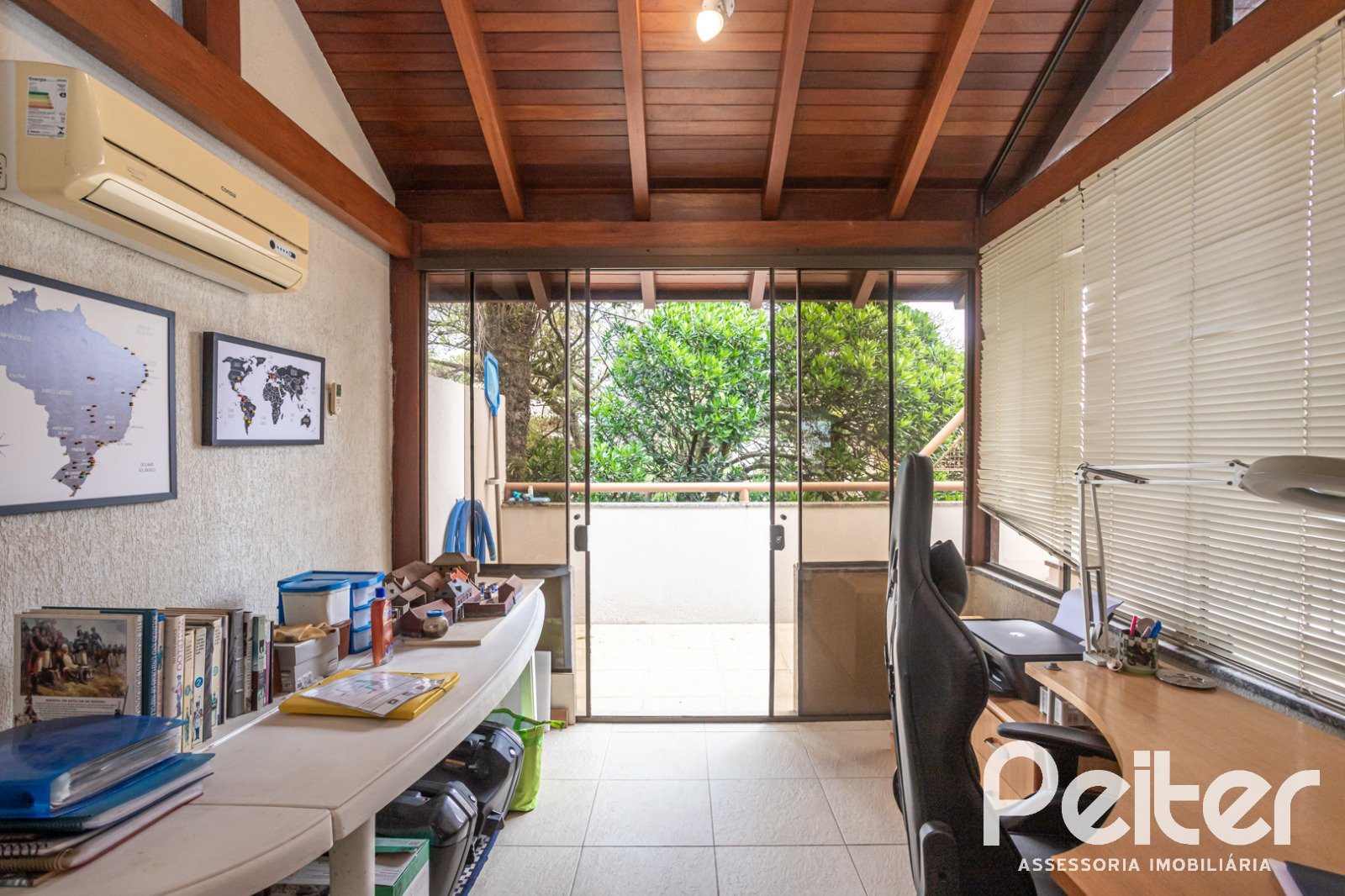 No sótão: espaço multiuso com banheiro, churrasqueira e terraço com piscina.