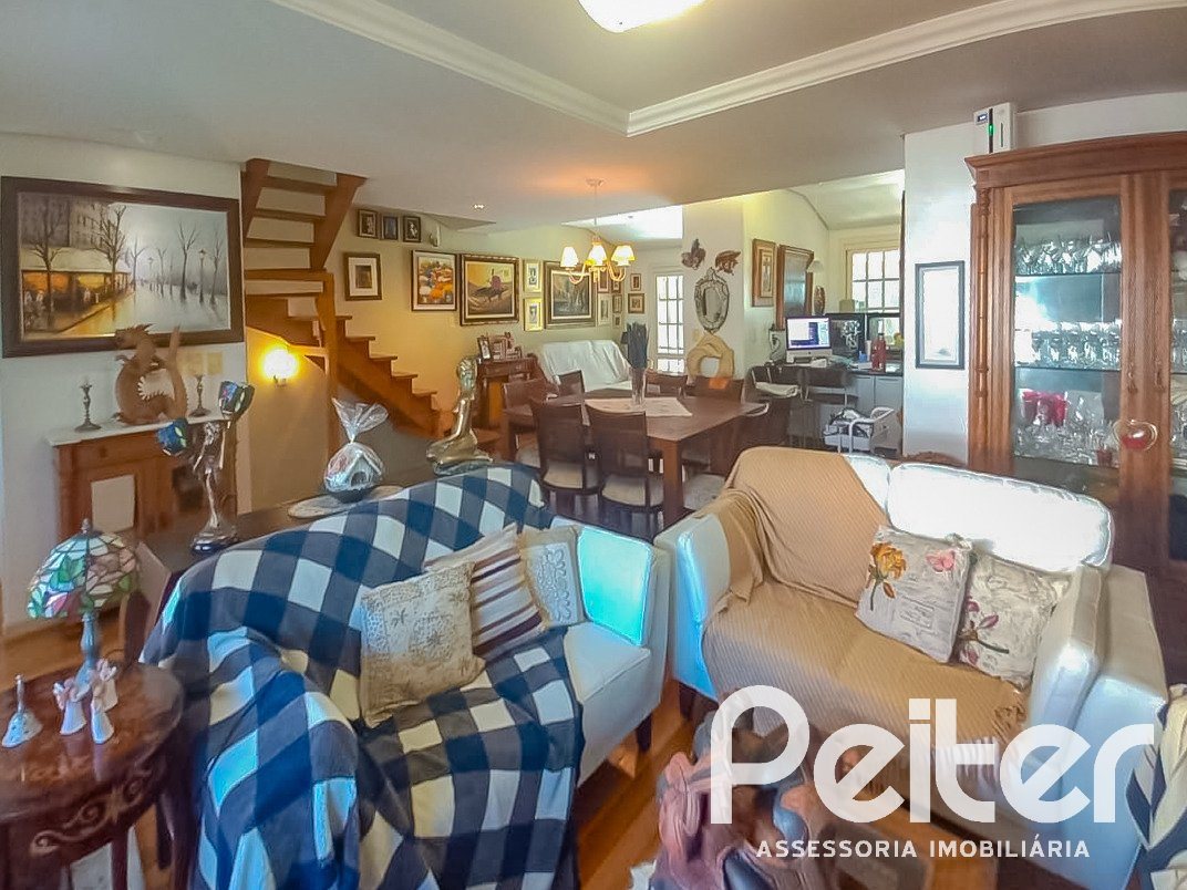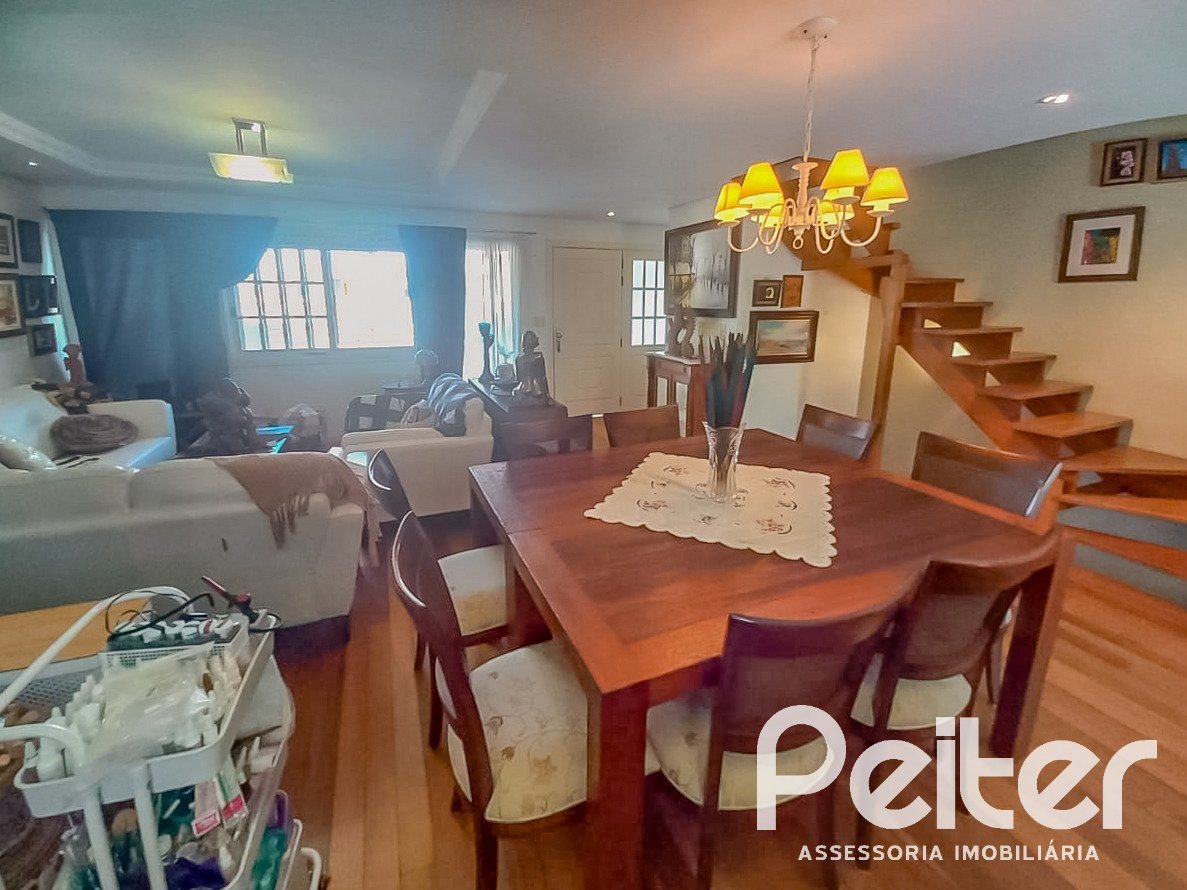 PEITER Imóveis vende ótima casa em condomínio com amplo terreno e pátio privativo, com living 03 ambientes, cozinha, varanda integrada, lavabo, 03 dormitórios, sendo 01 suíte com closet, garagem para 02 carros e espaço para o 3° carro em frente a casa.