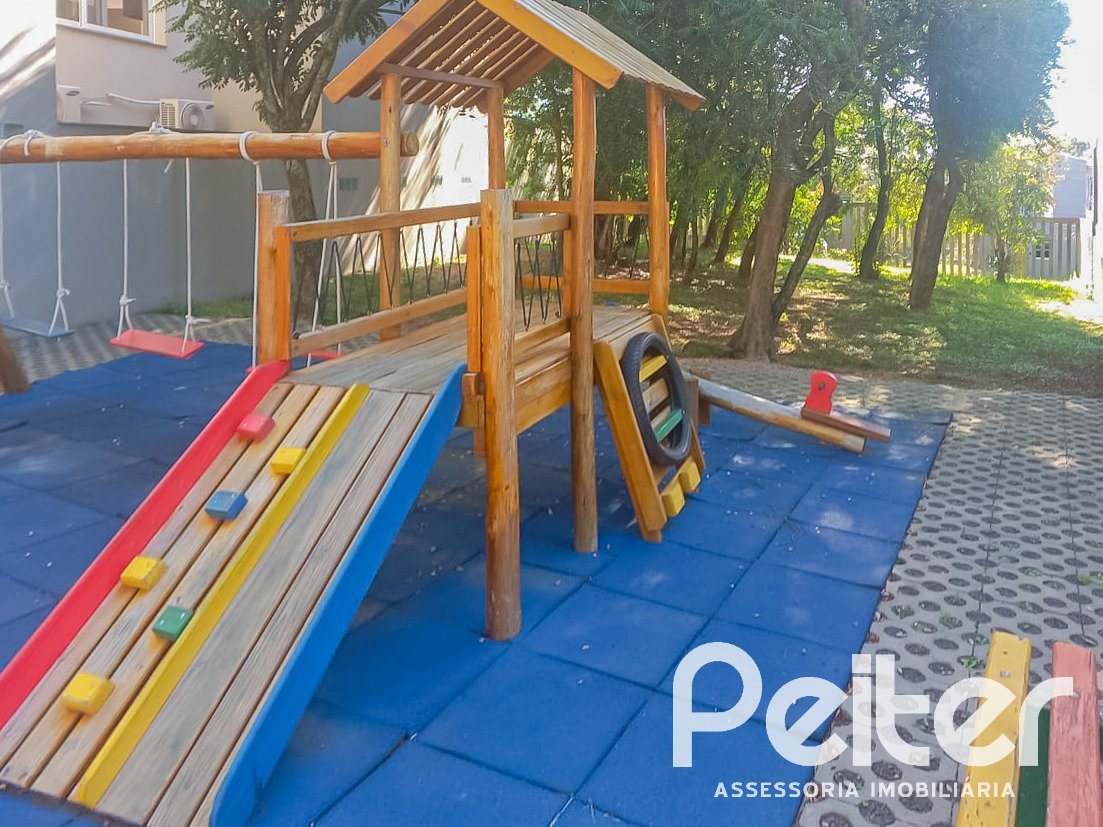 Condomínio com salão de festas, quadra esportiva, playground e bosque.