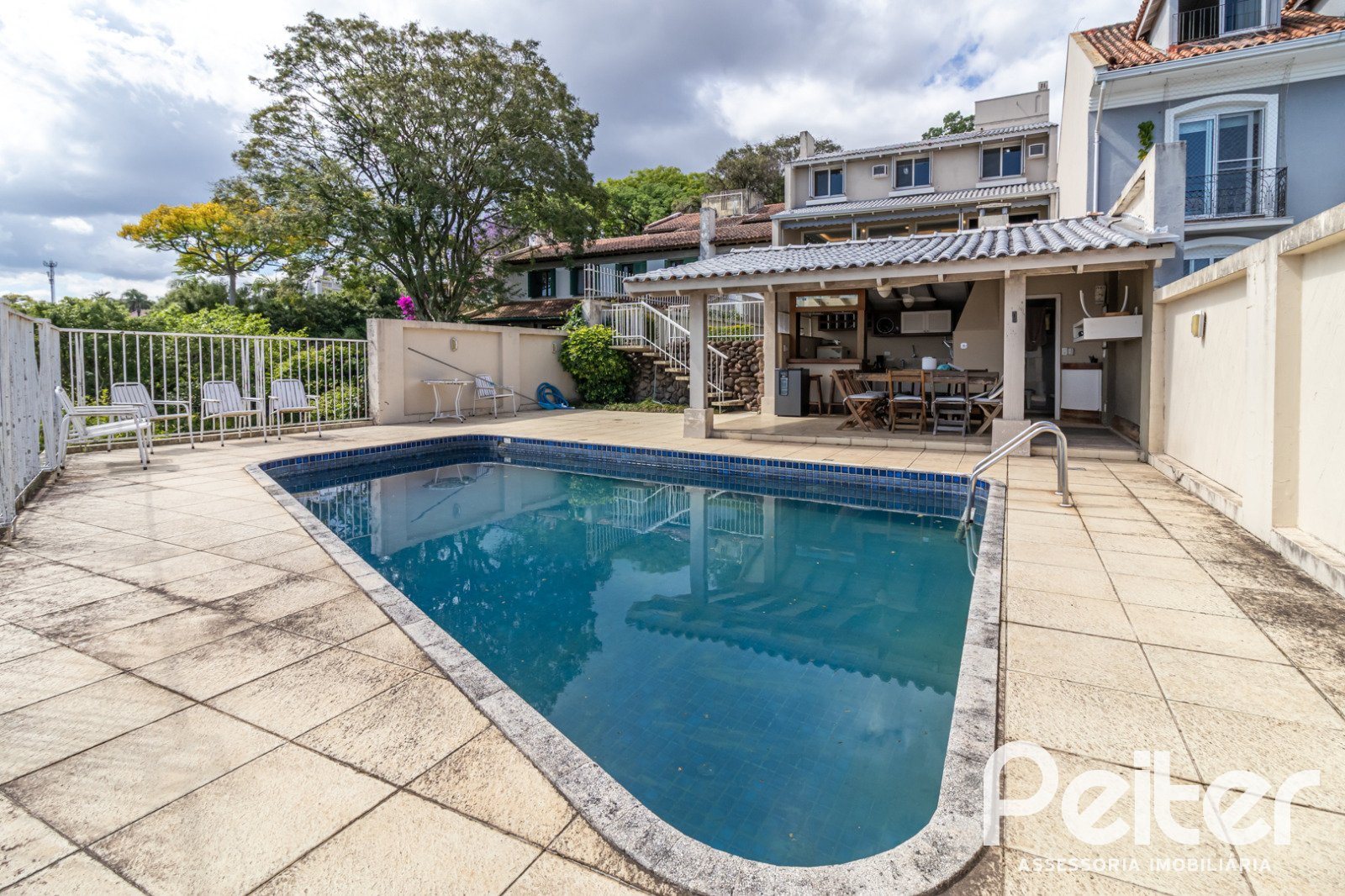 São 398m² de área construída em terreno de 662m², sendo 04 dormitórios onde 02 são suítes, banheiro social, living amplo vários ambientes com lareira, varanda, copa cozinha, lavabo, dependência de empregada, lavanderia, piscina com área gourmet e pátio.