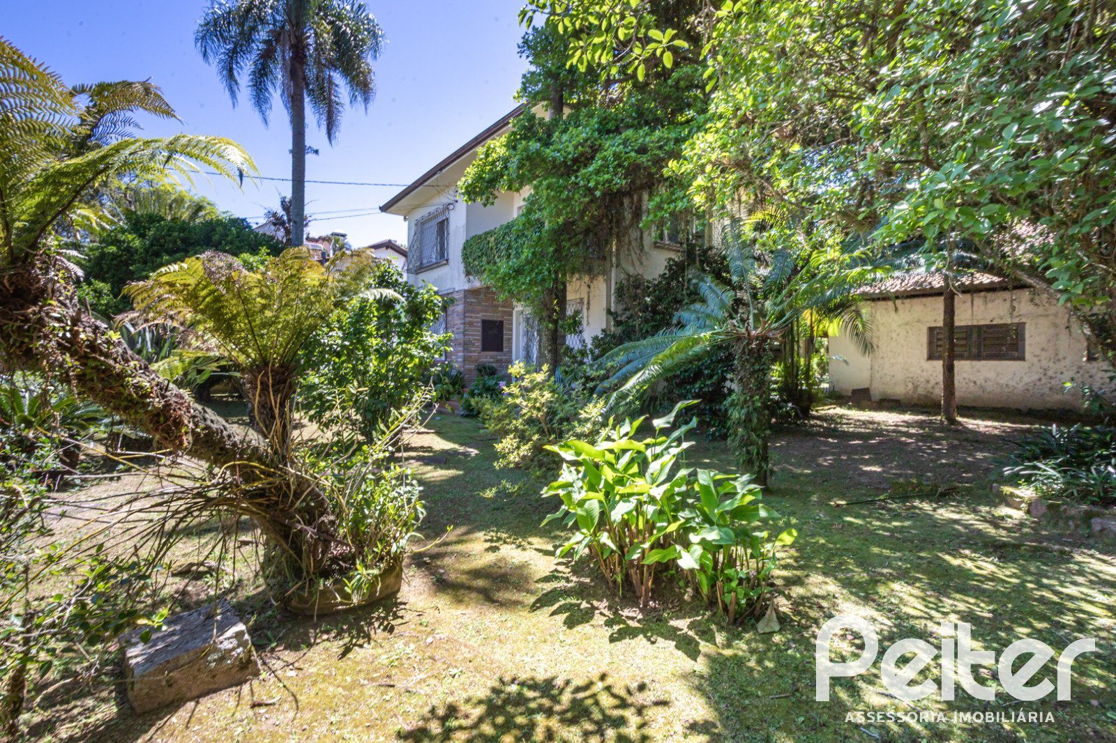 Pomar com frutíferas e amplo jardim.