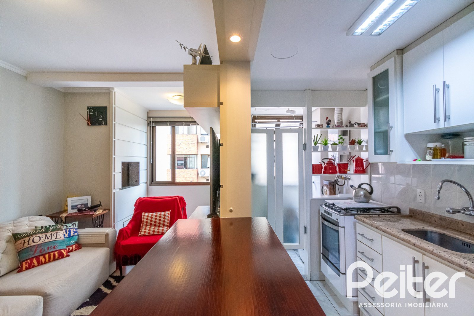 PEITER Imóveis vende ótimo apartamento MOBILIADO, em andar alto com 02 dormitórios, banheiro social, lavabo, living para 02 ambientes, sacada integrada com churrasqueira, cozinha americana e 01 vaga coberta.