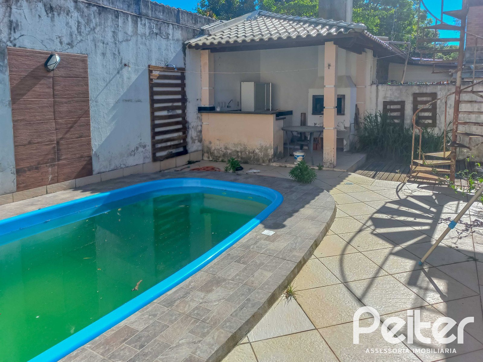 PEITER Imóveis vende casa térrea no bairro Guarujá, a poucos metros da Orla do Guaíba, com living 02 ambientes, lareira, 03 dormitórios, sendo 01 suíte, banheiro social, espaço multiuso, pátio com churrasqueira, piscina e terraço amplo com acesso a partir do pátio.