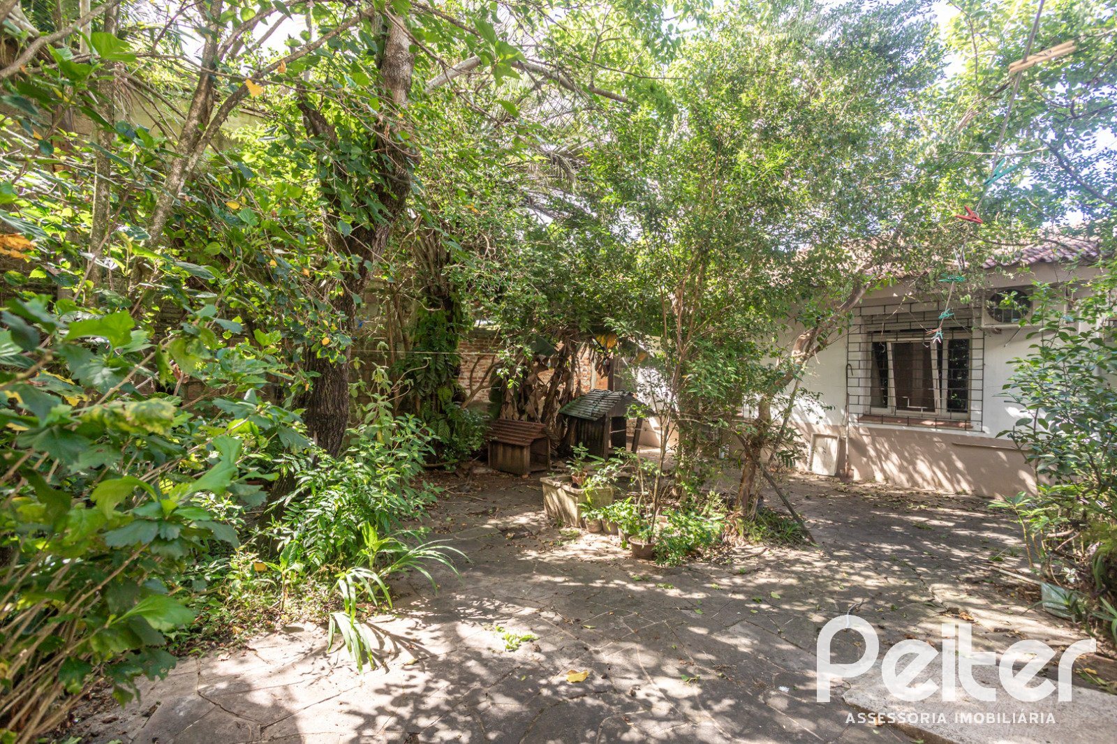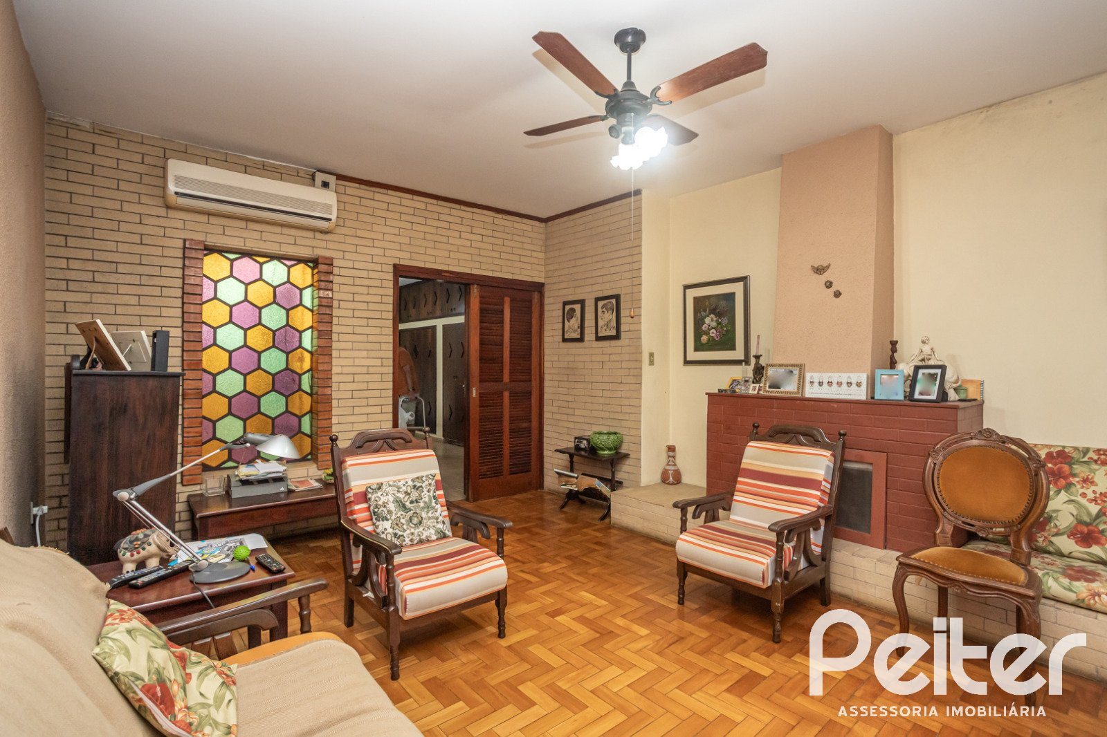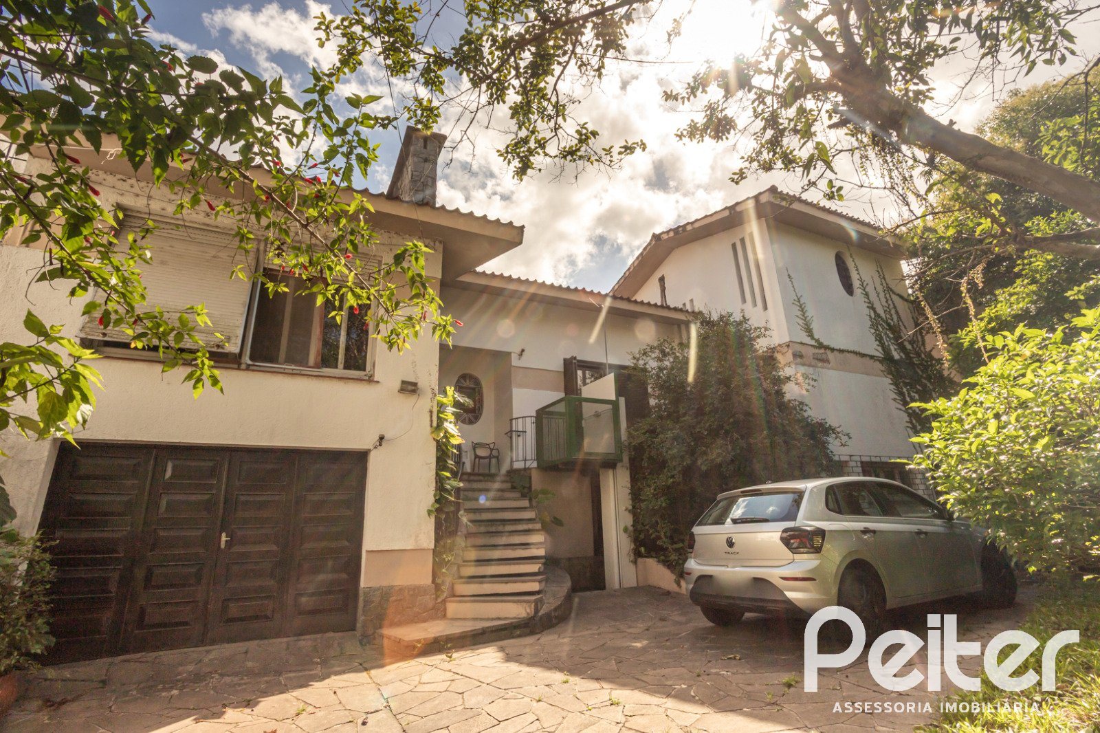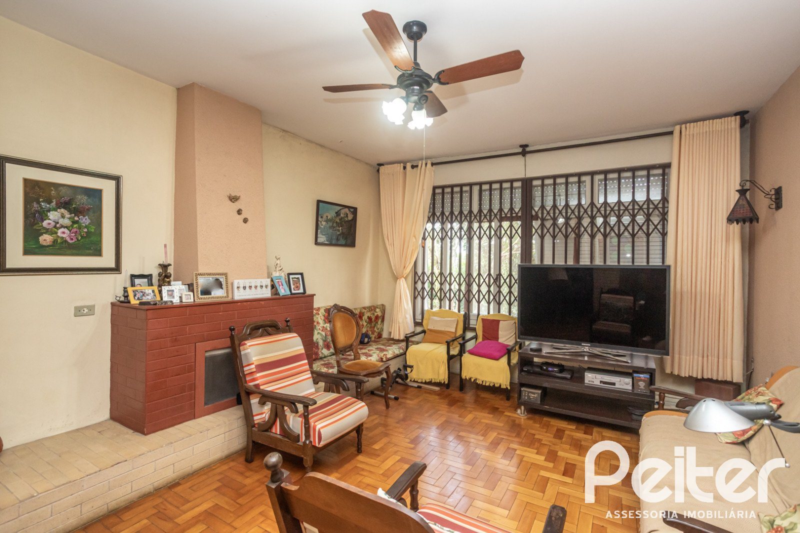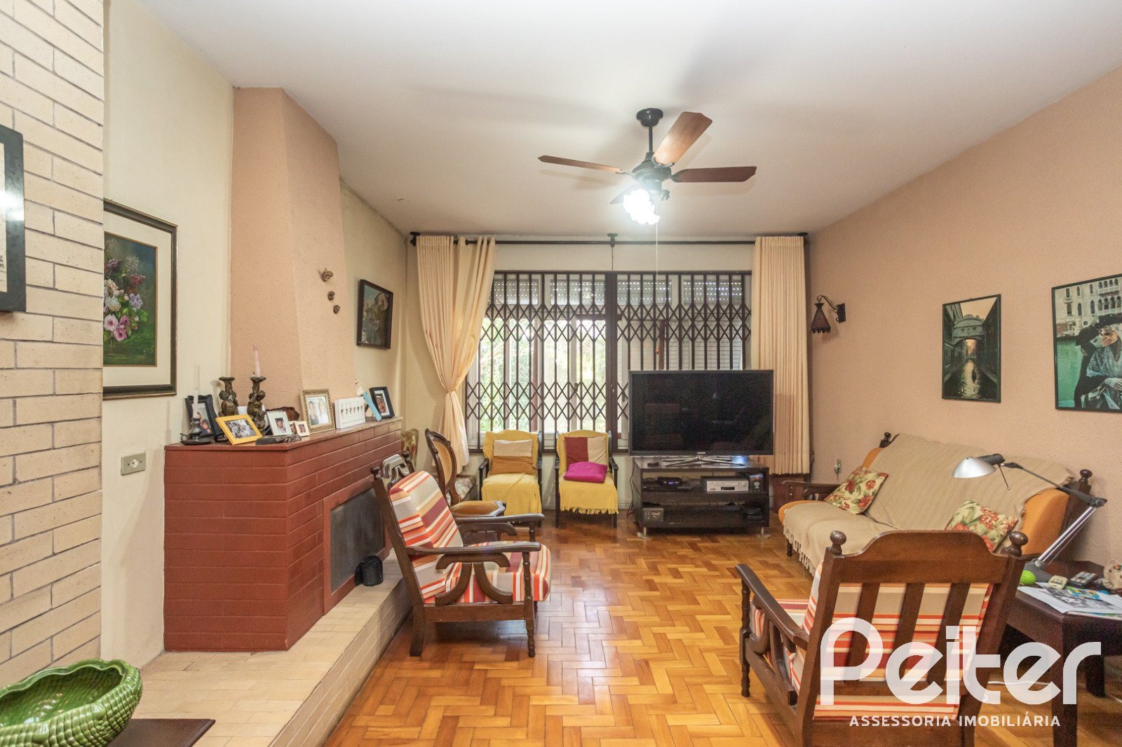 PEITER Imóveis vende casa térrea ampla, com estrutura muito sólida, living 02 ambientes com lareira, copa-cozinha, 04 dormitórios, área de serviço, salão de festas, churrasqueira e amplo pátio.