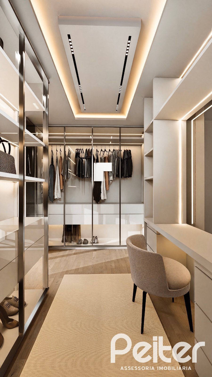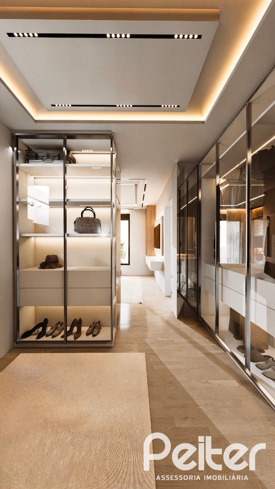 A suíte master tem 27 m², com closet.