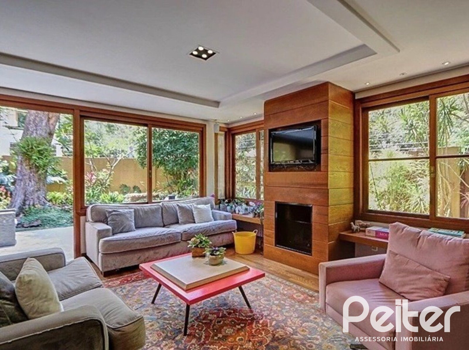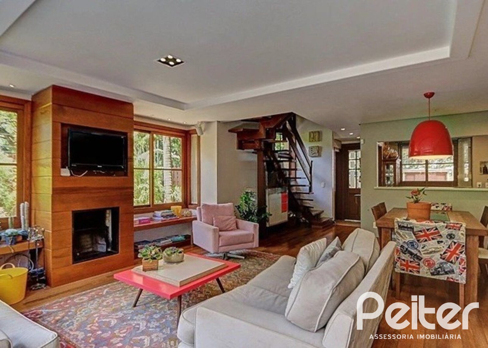 O imóvel conta com amplo living, lareira, ambientes de estar e sala de jantar.