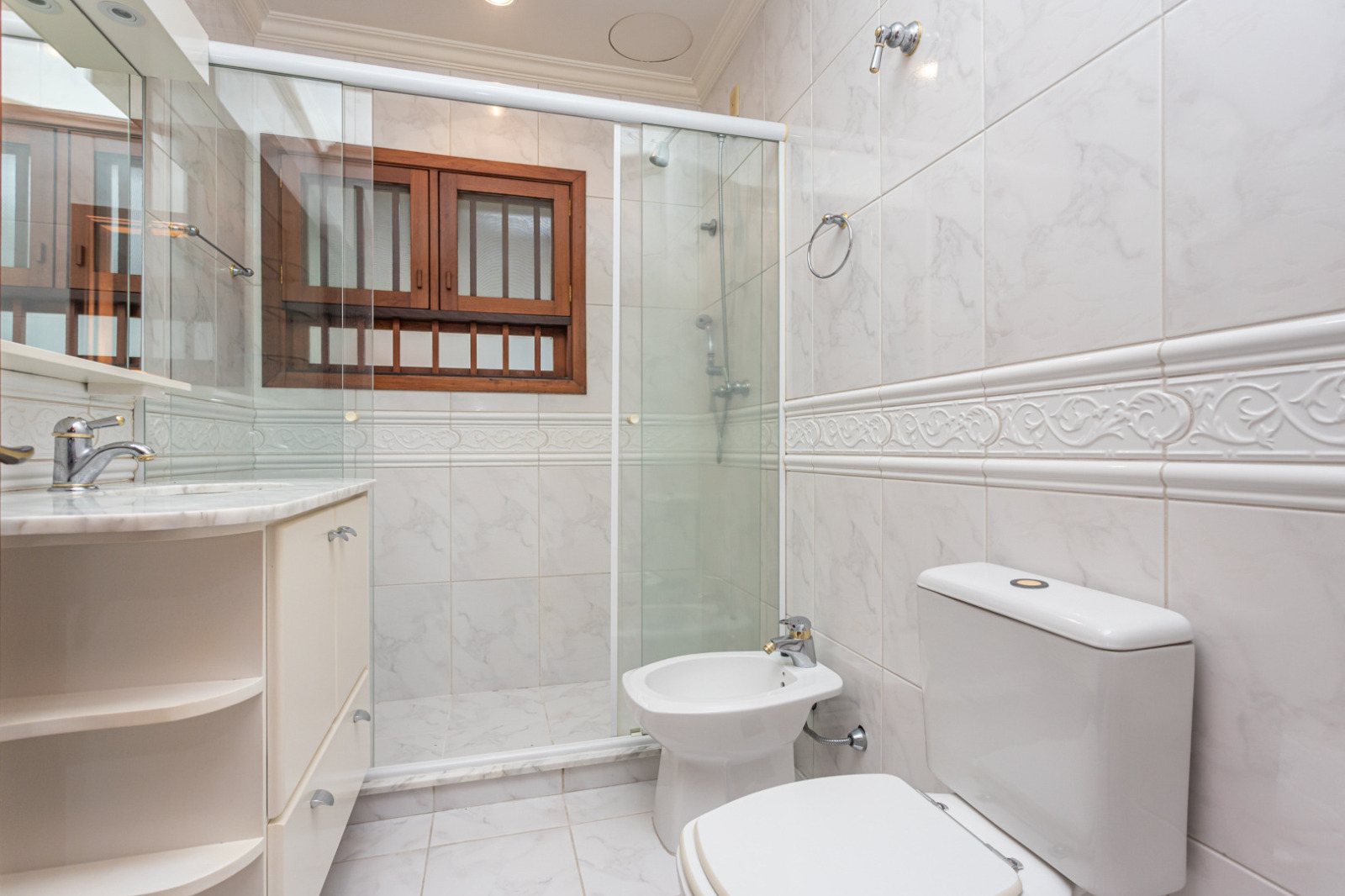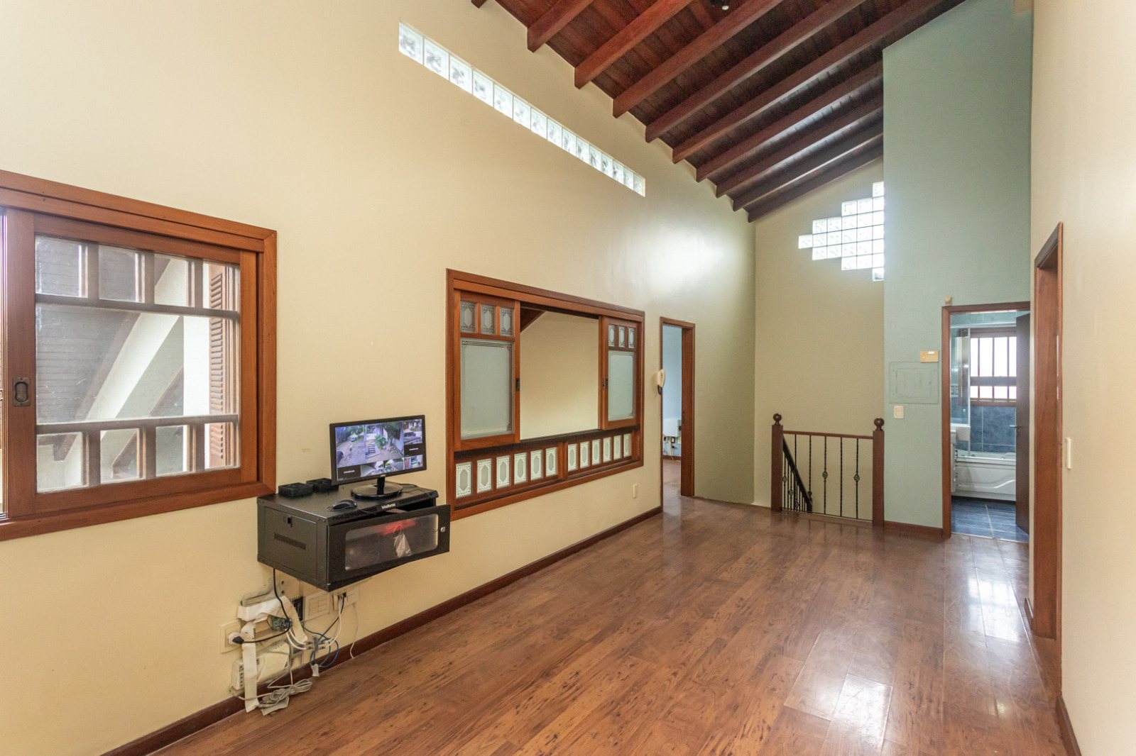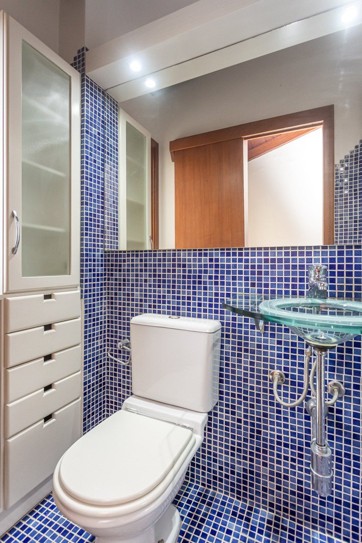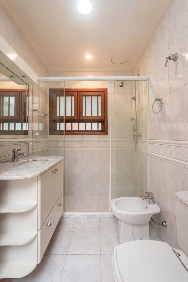No piso superior, estar íntimo, 02 suítes, 01 delas com lavabo e amplo closet, 01 dormitório e banheiro social.