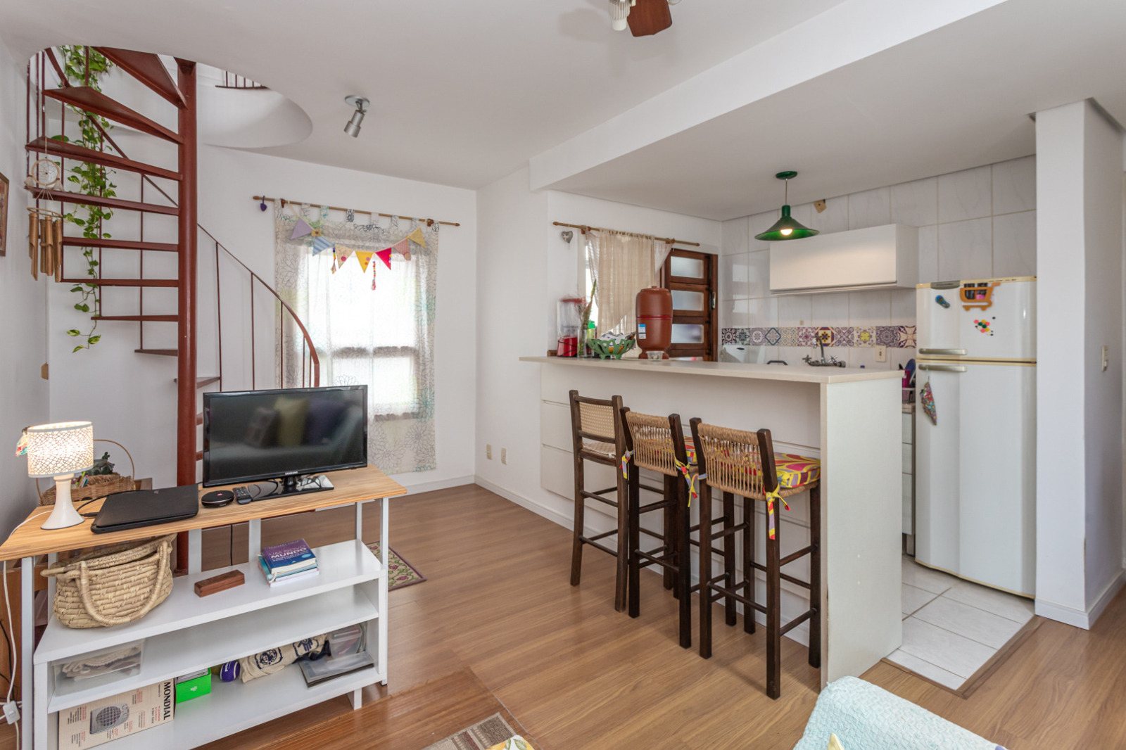 PEITER Imóveis vende cobertura de 01 dormitório e living integrado com cozinha. Na parte superior, churrasqueira, sala de estar e jardim. Vaga de garagem por convenção.