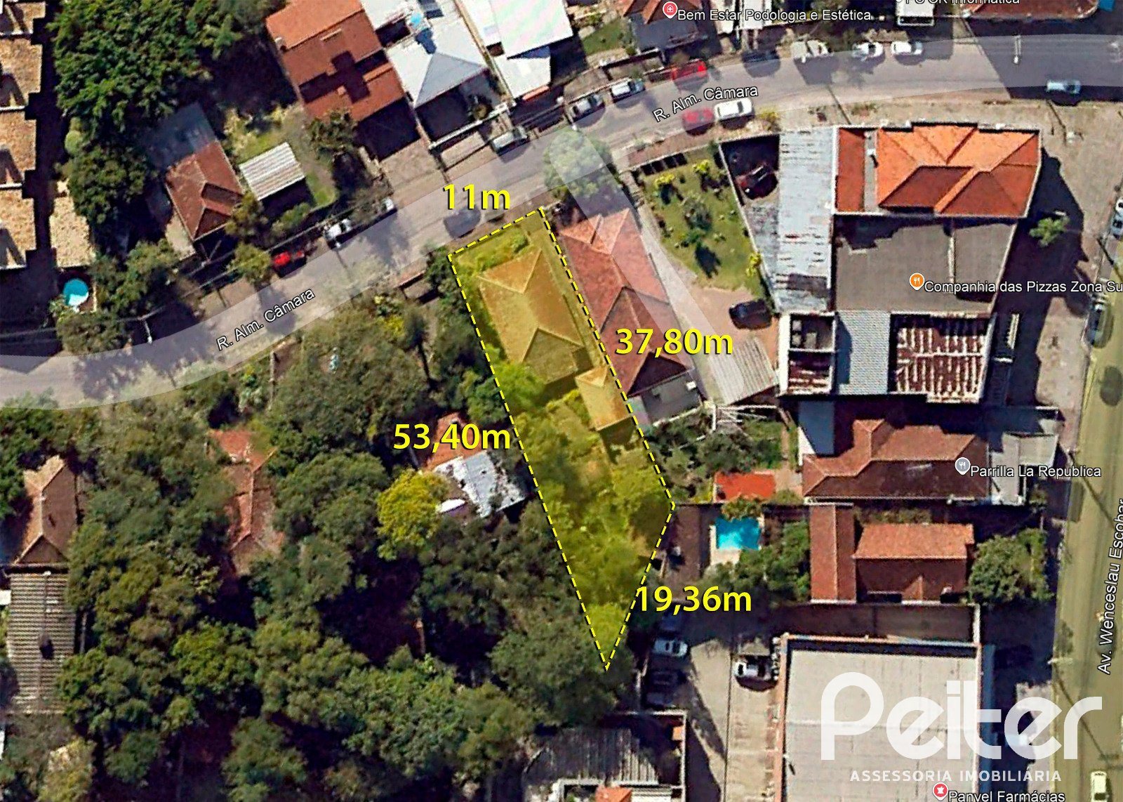 Com frente norte, proporciona excelente orientação solar e luminosidade ao longo de todo o dia. Suas dimensões, 11m de frente, 37,80m ao leste, 53,40m ao oeste e 19,36m ao sul, conferem amplitude e versatilidade, ideal para projetos residenciais de alto padrão.