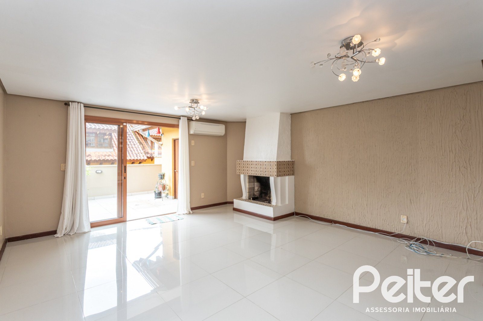 Conta com hall de entrada, lavabo, amplo living para 03 ambientes com lareira e acesso ao terraço, além de cozinha americana integrada.