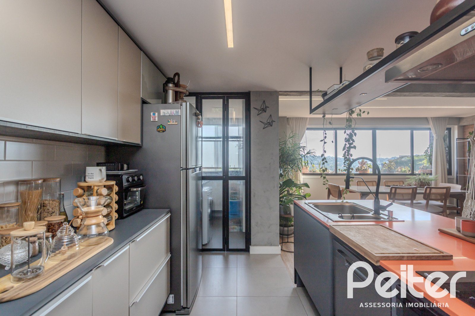 A cozinha em conceito aberto se conecta harmoniosamente a 04 ambientes distintos, sendo um deles com churrasqueira, ideal para receber amigos e familiares. A área de serviço é separada, garantindo funcionalidade no dia a dia.