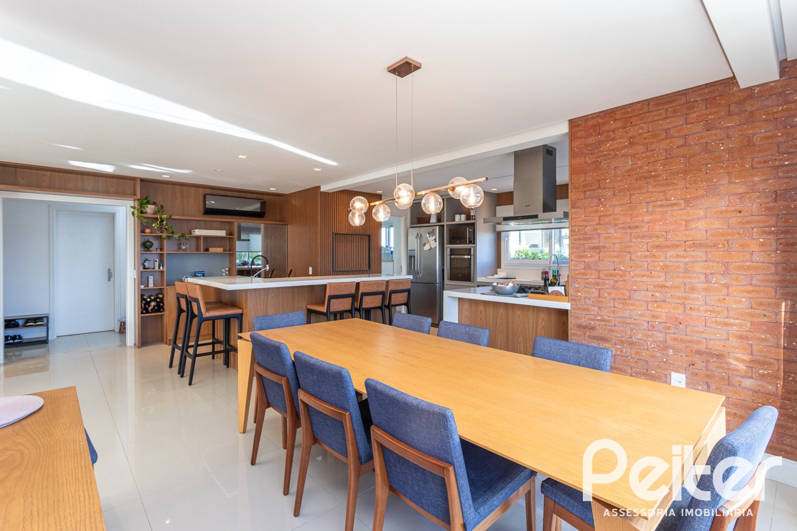 São 03 suítes, sendo 01 suíte master com amplo closet, pisos aquecidos em todos os banheiros, living com lareira integrado a sala de jantar e cozinha, espaço gourmet com churrasqueira, varanda com deck, lavabo, gabinete, lavanderia.