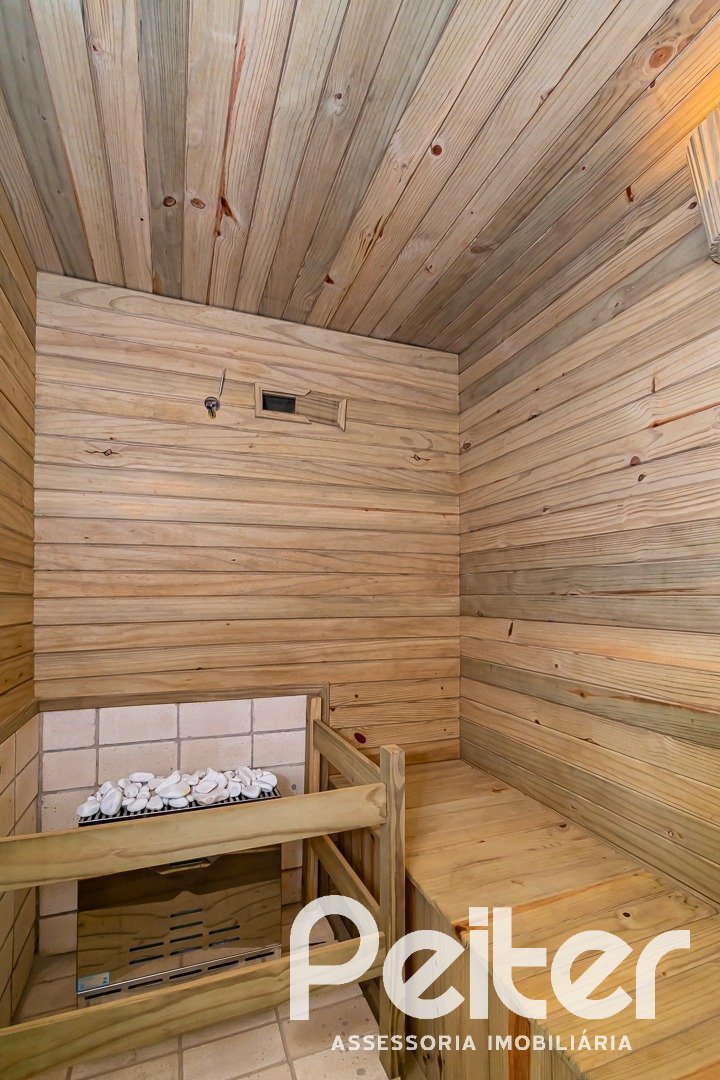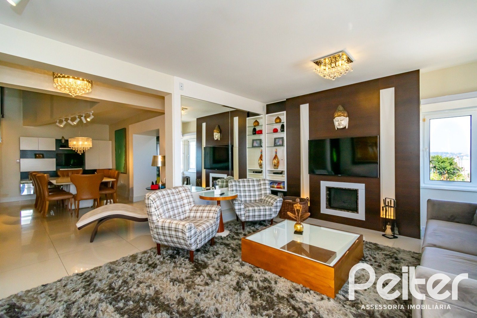 Possui hall de entrada, living para 03 ambientes com lareira e piso em porcelanato, sala de jantar, estar íntimo, 03 dormitórios, sendo 01 suíte master, varanda, cozinha americana, área de serviço, sauna, espaço gourmet, piscina aquecida, pátio, garagem coberta para 03 carros e mais estacionamento.