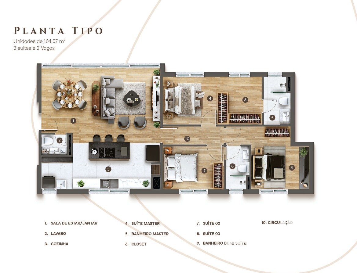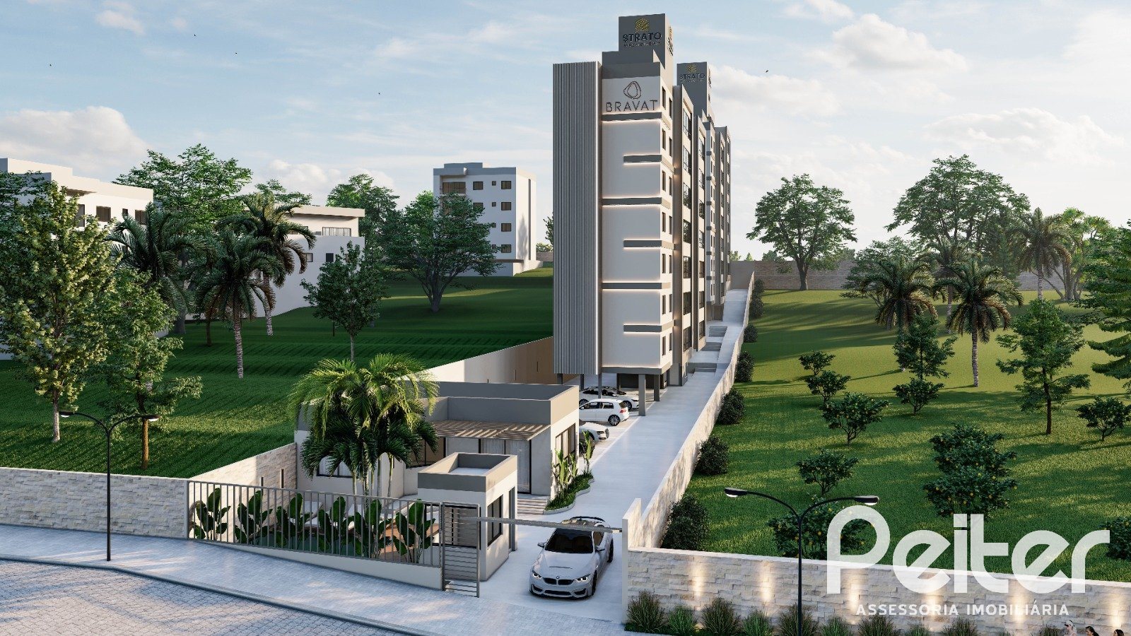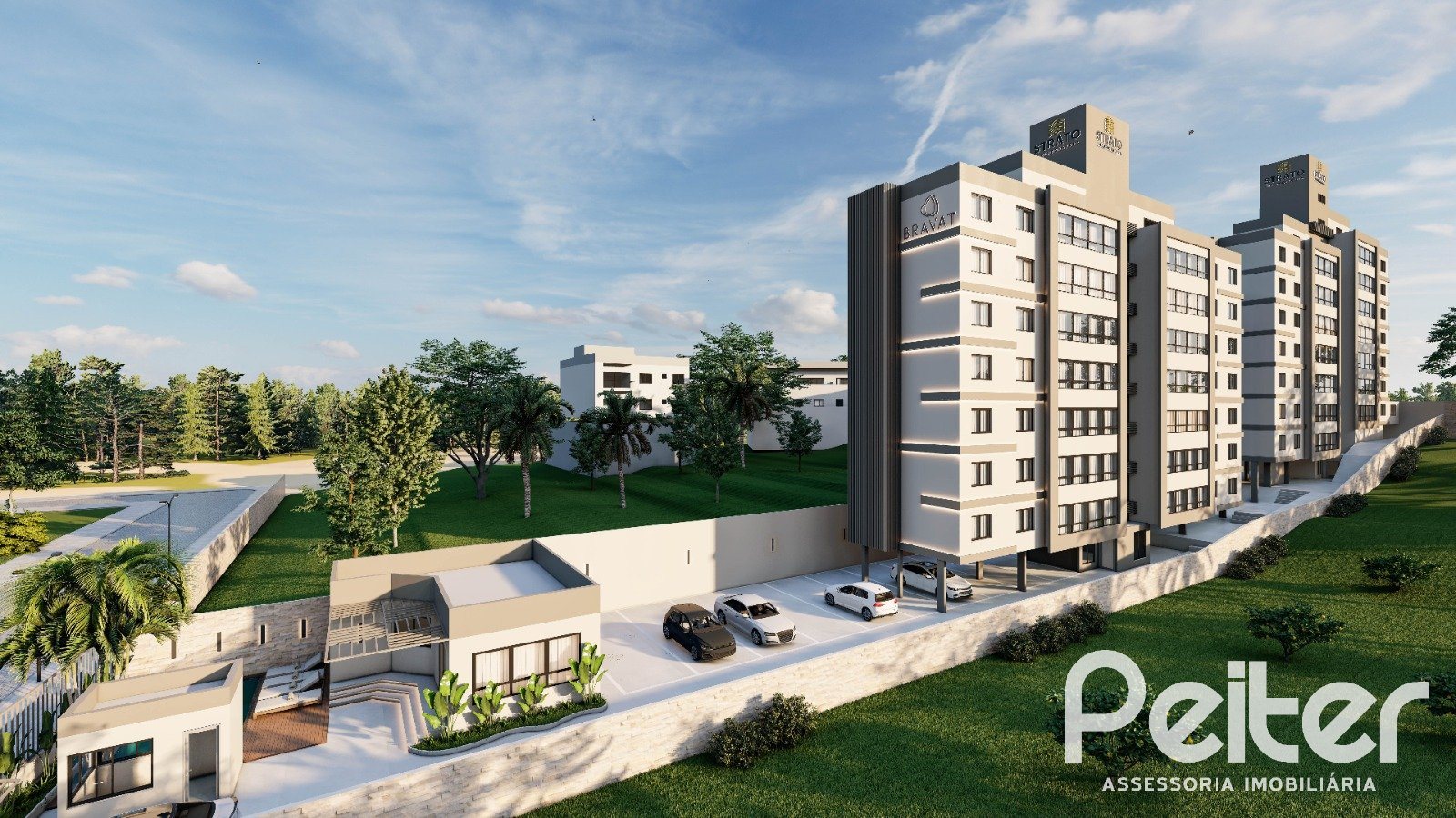 Bravat é o novo empreendimento alto padão na zona sul de Porto Alegre, com 02 torres de apartamentos de 03 suítes, sendo 02 americanas, 104,07m² de área privativa, distribuídos em living para 02 ambientes, lavabo, cozinha com churrasqueira e 02 vagas de garagem.