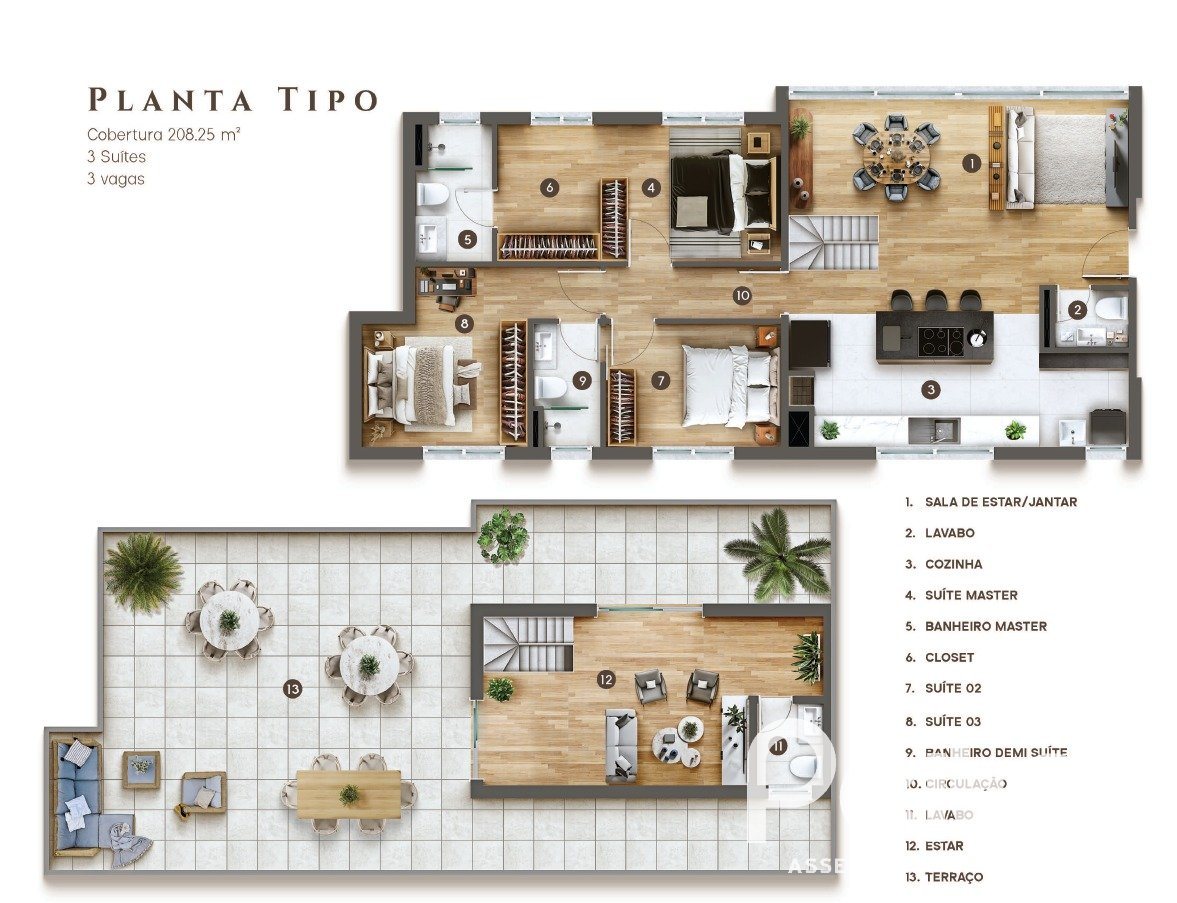 Bravat é o novo empreendimento alto padão na zona sul de Porto Alegre, com 02 torres, cobertura com 03 suítes, sendo 02 americanas, 208,25m² de área privativa, distribuídos em living para 02 ambientes, lavabo, cozinha com churrasqueira, na parte da cobertura possui um espaço multiuso com banheiro e um amplo terraço com vista e 03 vagas de garagem.