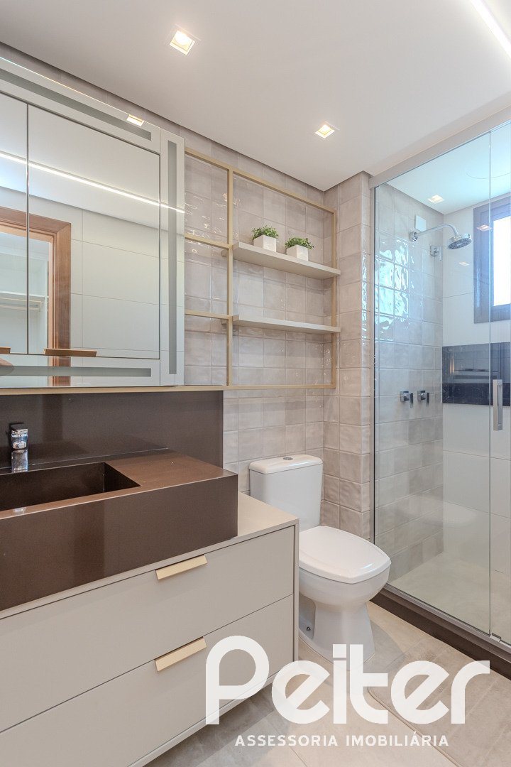 Possui 03 dormitórios amplos, sendo 01 suíte, banheiro social, living em porcelanato para 03 ambientes com espera para lareira, lavabo, cozinha americana com churrasqueira, área de serviço e 06 vagas de garagem.