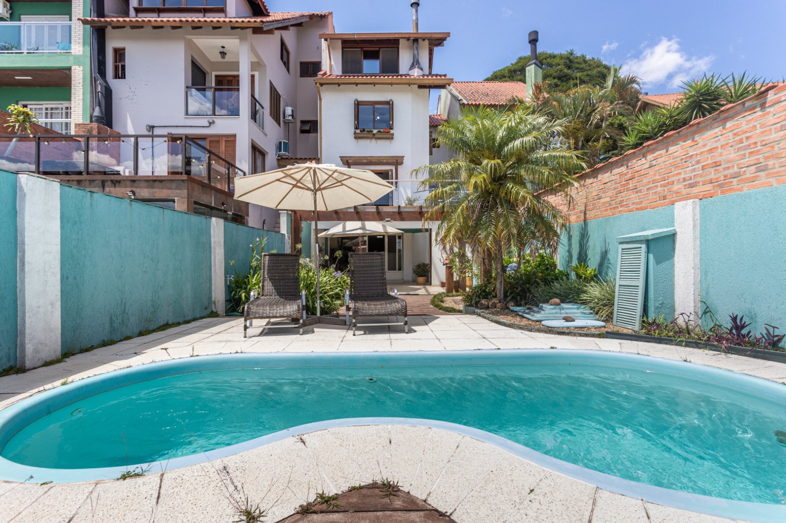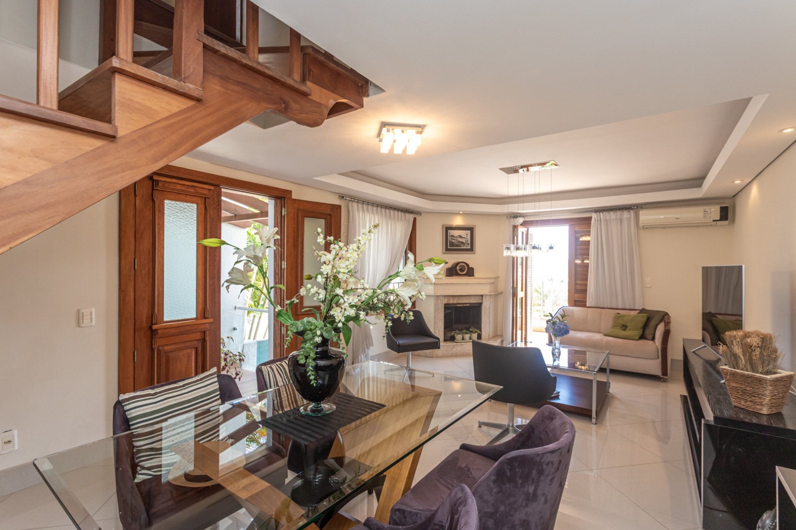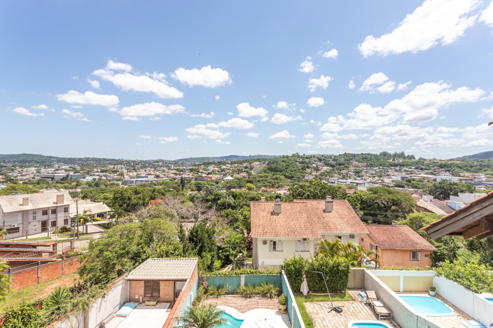Possui hall de entrada, lavabo, living para 02 ambientes com terraço, lareira, copa-cozinha, lavanderia, 03 amplos dormitórios, sendo 01 suíte, sendo que 02 dormitórios possuem sacadão e opção para 2ª suíte, garagem para 03 carros, salão de festas, varanda, banheiro, piscina e pátio.