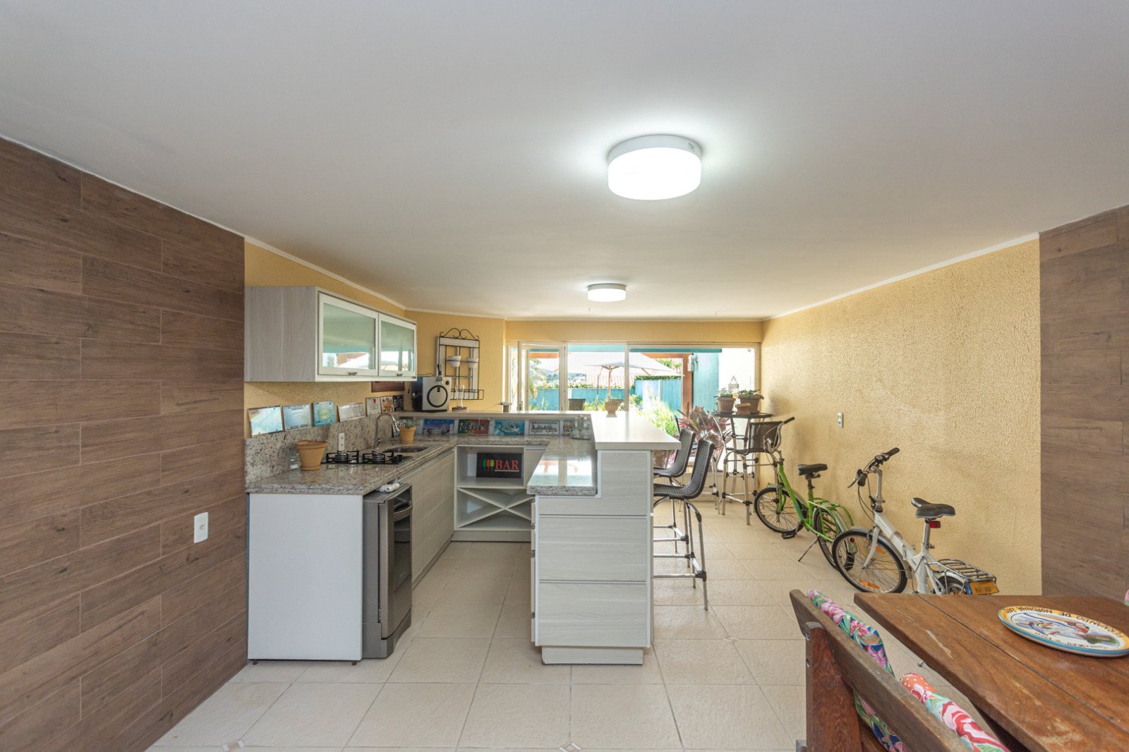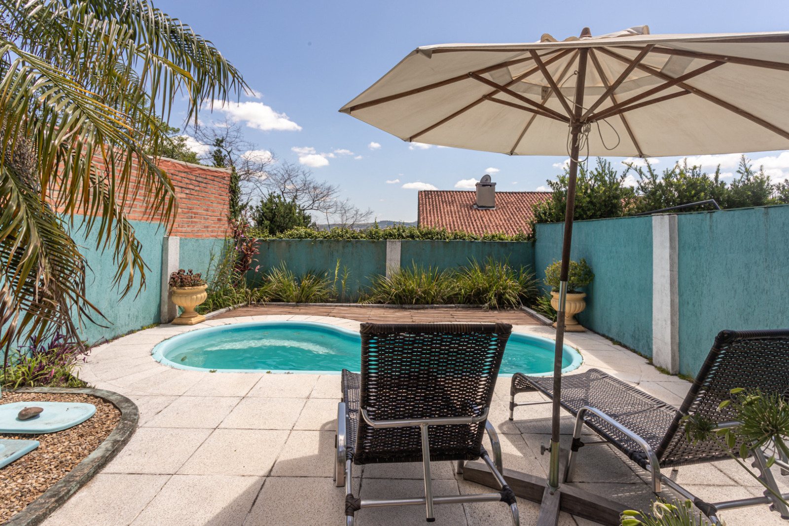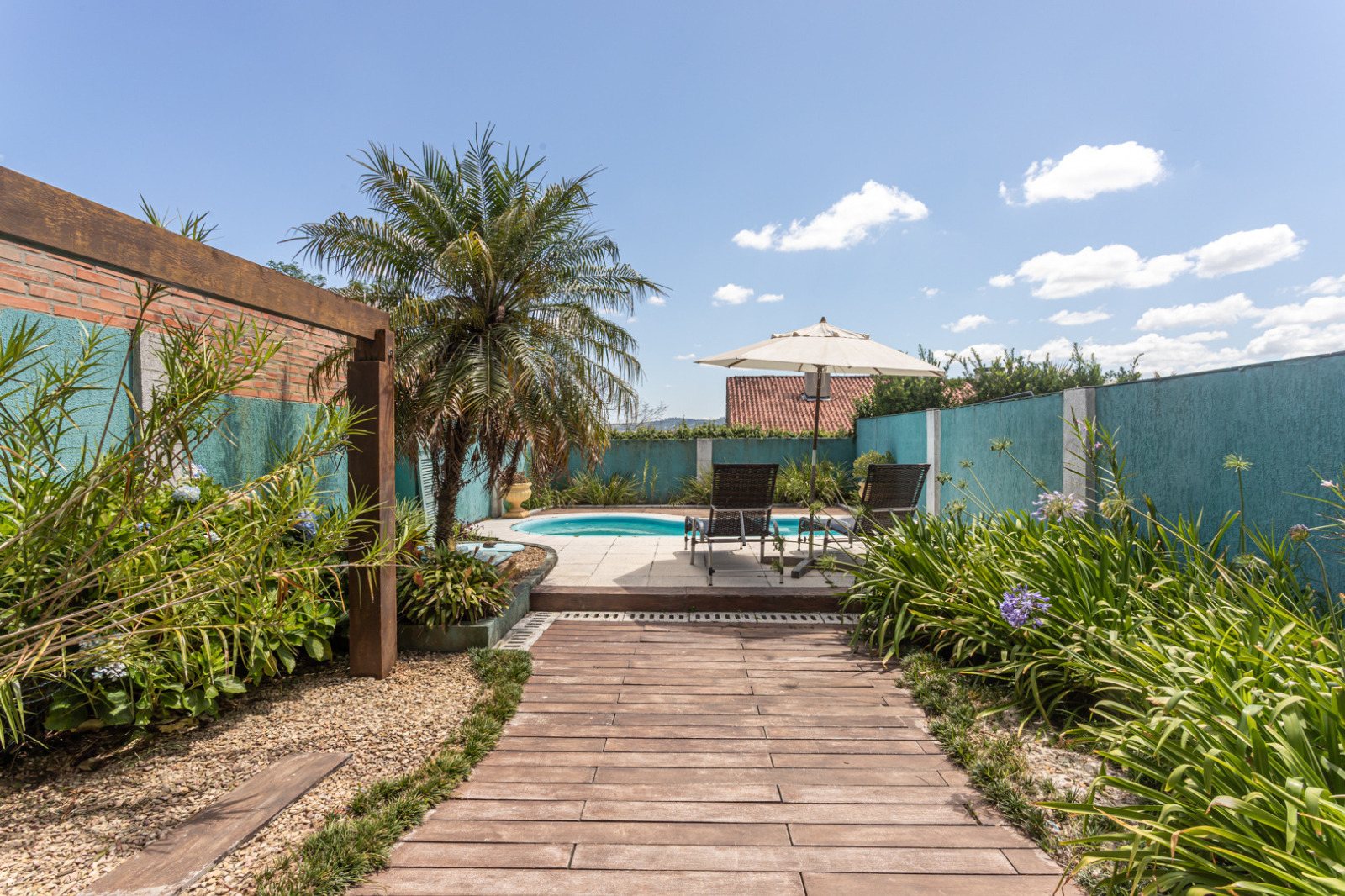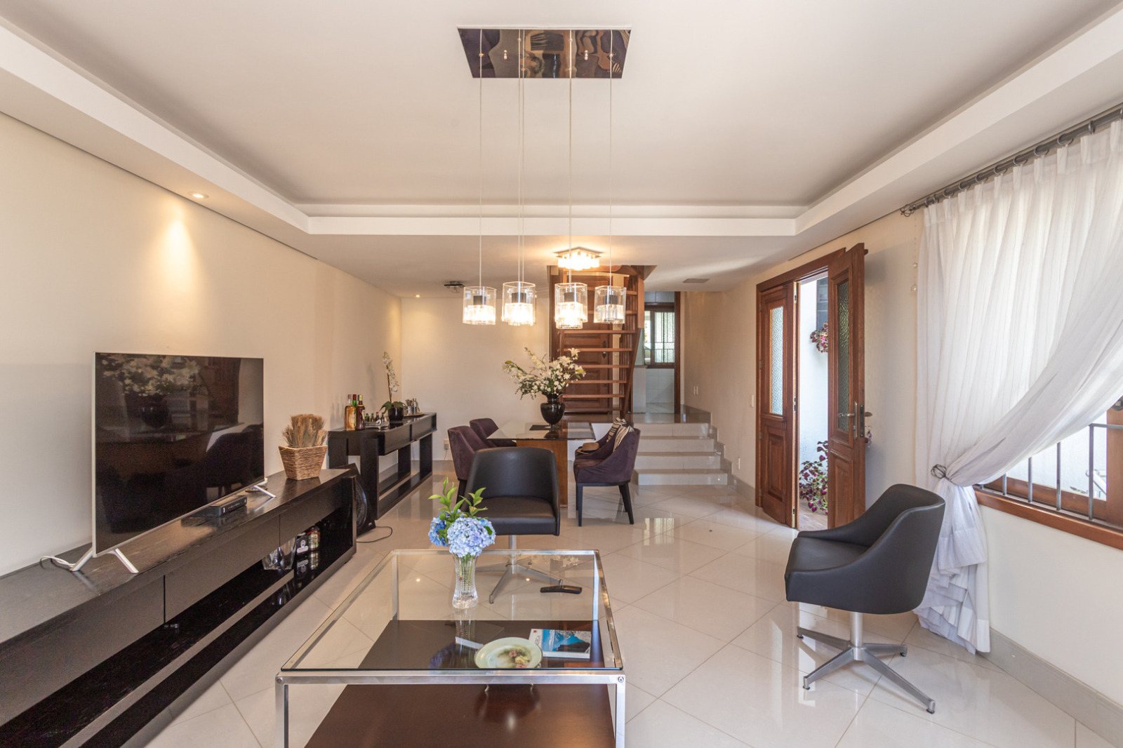 Possui hall de entrada, lavabo, living para 02 ambientes com terraço, lareira, copa-cozinha, lavanderia, 03 amplos dormitórios, sendo 01 suíte, sendo que 02 dormitórios possuem sacadão e opção para 2ª suíte, garagem para 03 carros, salão de festas, varanda, banheiro, piscina e pátio.