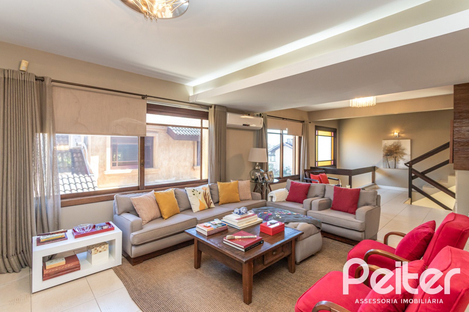 PEITER Imóveis vende excelente casa em condomínio, ótima posição solar, living 02 ambientes com lareira, sala de jantar integrado ao jardim de inverno, churrasqueira e espaço gourmet.