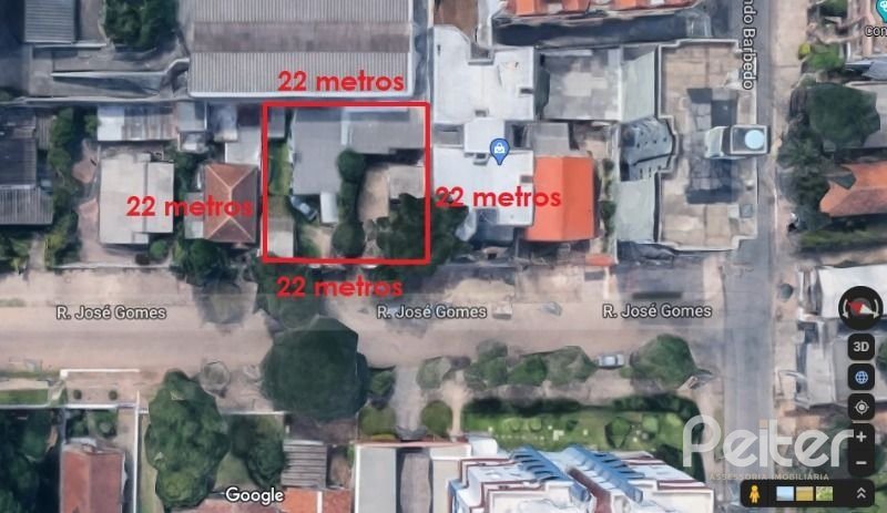 Peiter vende terreno na José Gomes medindo 484m² (22m x 22m) próximo a Otto Niemeyer e Zaffari, localização nobre do bairro com uma casa antiga no terreno.