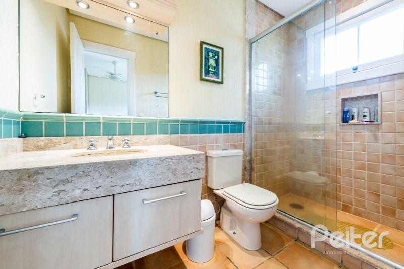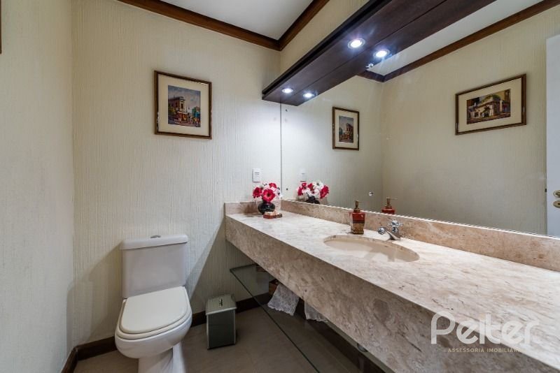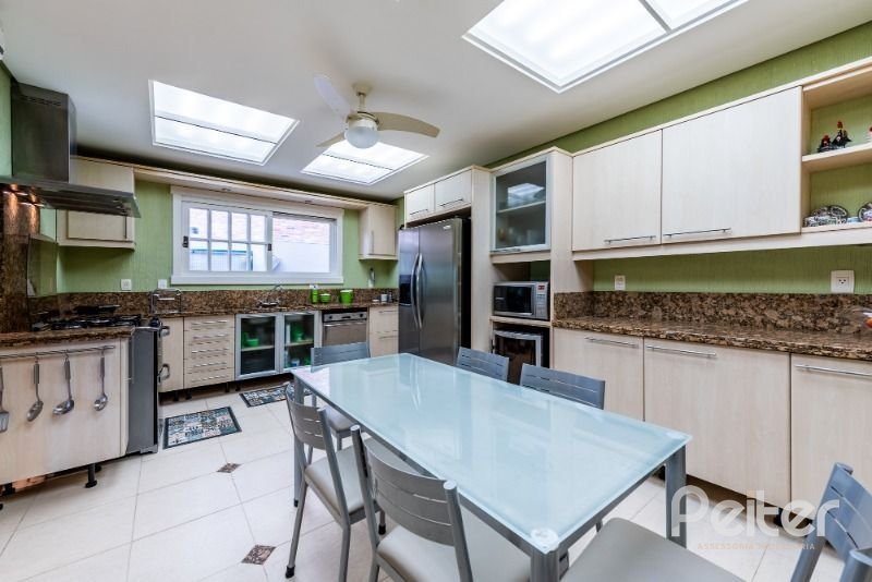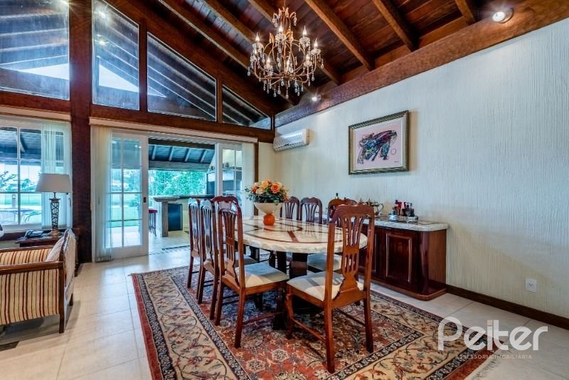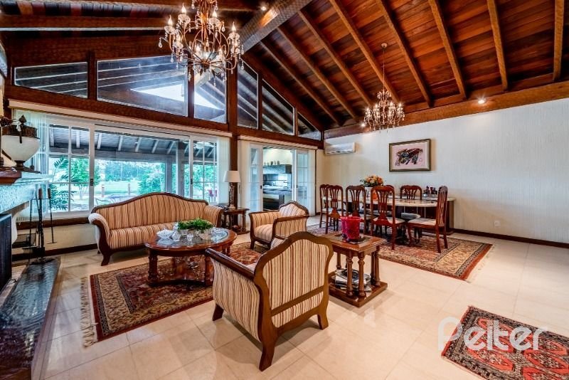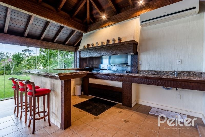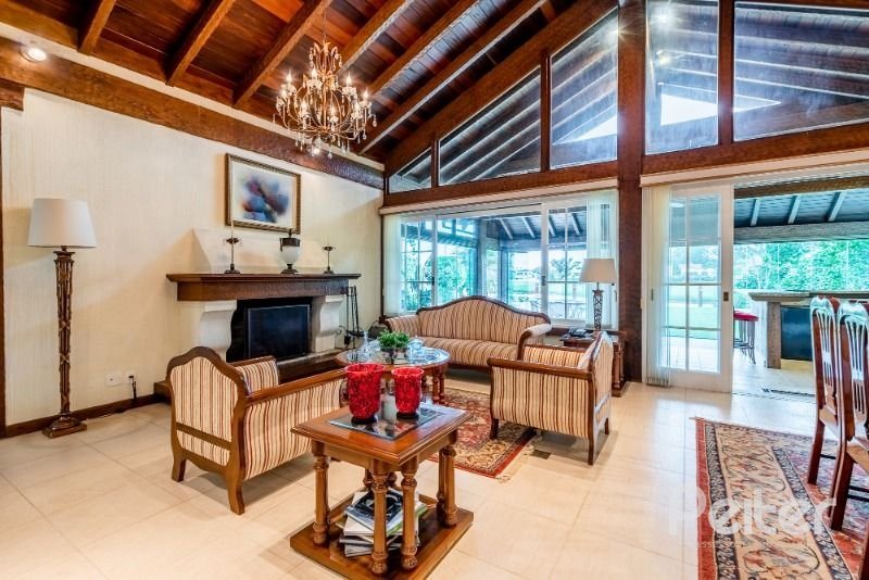 Possui 03 suítes, sendo 02 delas no térreo e 01 no andar superior com terraço e lareira. Living para 03 ambientes, espaço gourmet com varanda, pátio e piscina. Conta com piso aquecido em toda casa.