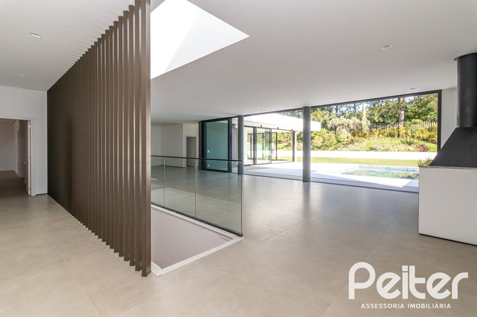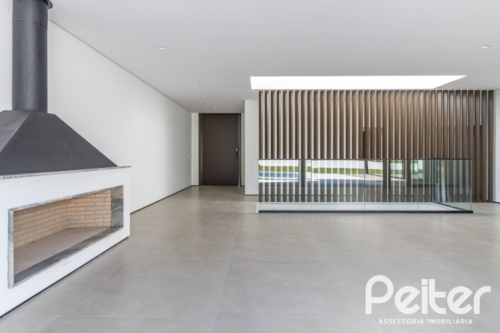 O living se conecta ao ambiente gourmet, passando antes pela suíte de hóspedes e espaço para escritório, que também pode ser uma academia ou estúdio. O gourmet tem saída lateral para uma ampla varanda e área de piscina, assim como, saída para o fundo do terreno com acesso a área de lareira externa, propiciando o uso integrado destes ambientes em qualquer estação do ano.