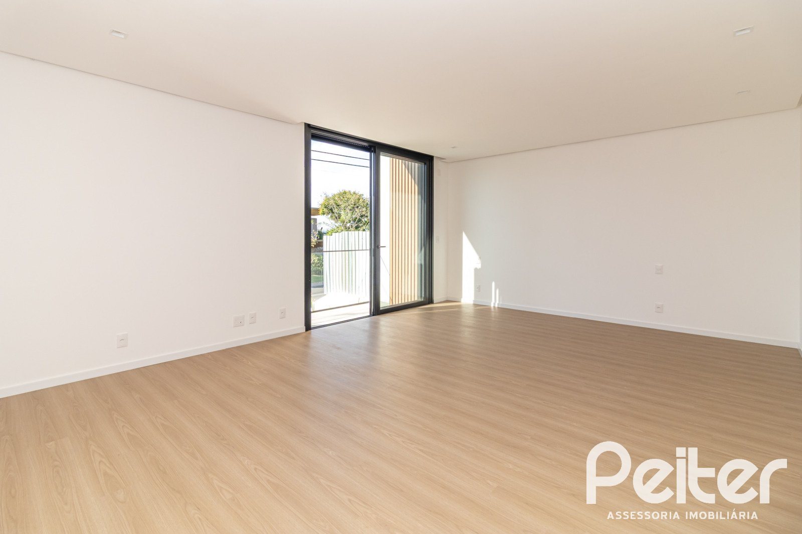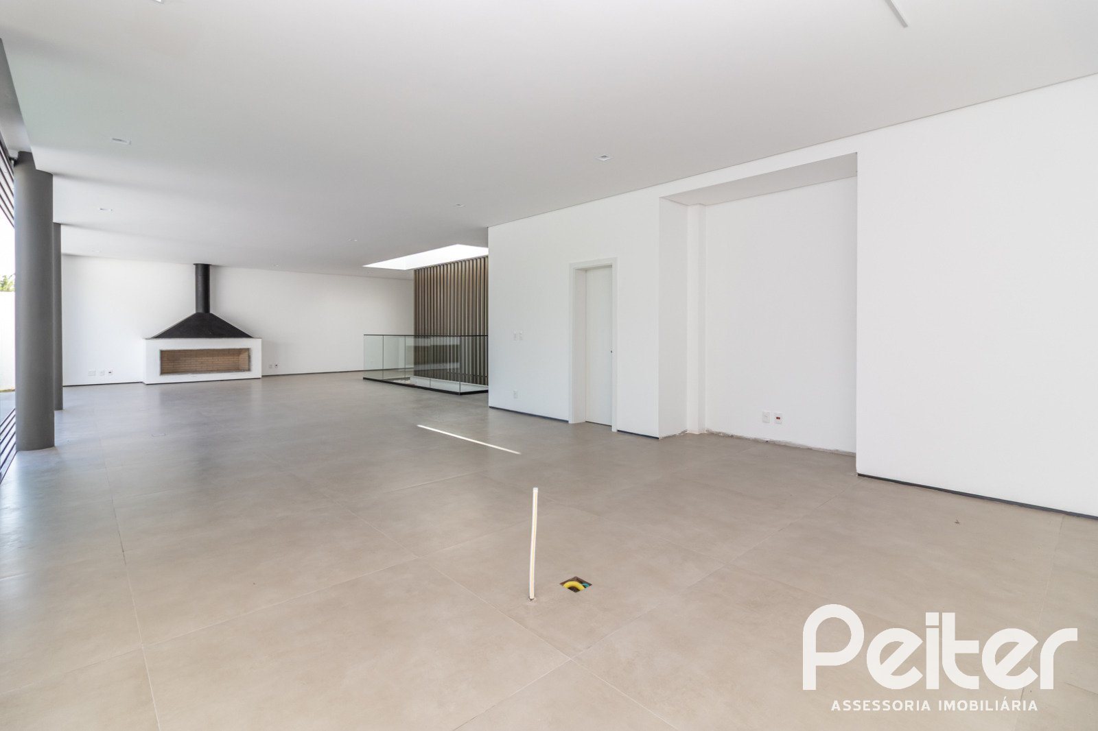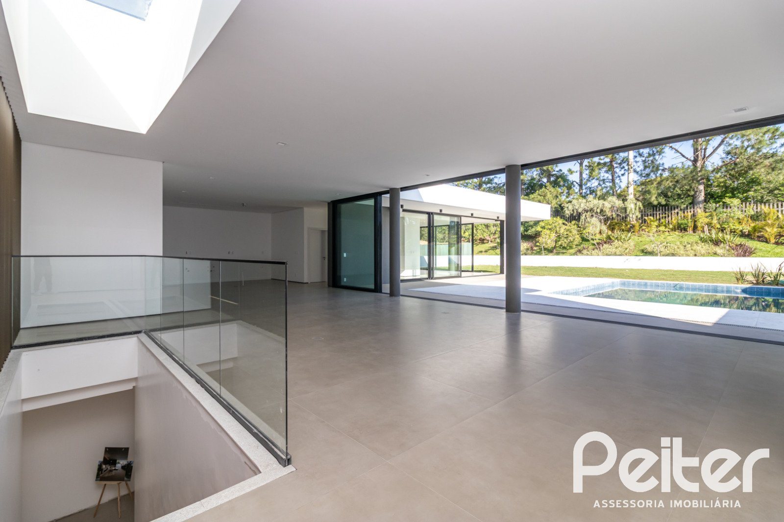 O amplo living conta com 100m², com pé direito de 03 metros, espaço para 04 ambientes, inclusive, adega vertical para 100 garrafas, integrado à cozinha em conceito aberto e com saída total por amplas aberturas para a área externa e de piscina, sendo esta entregue com aquecimento solar e prainha.