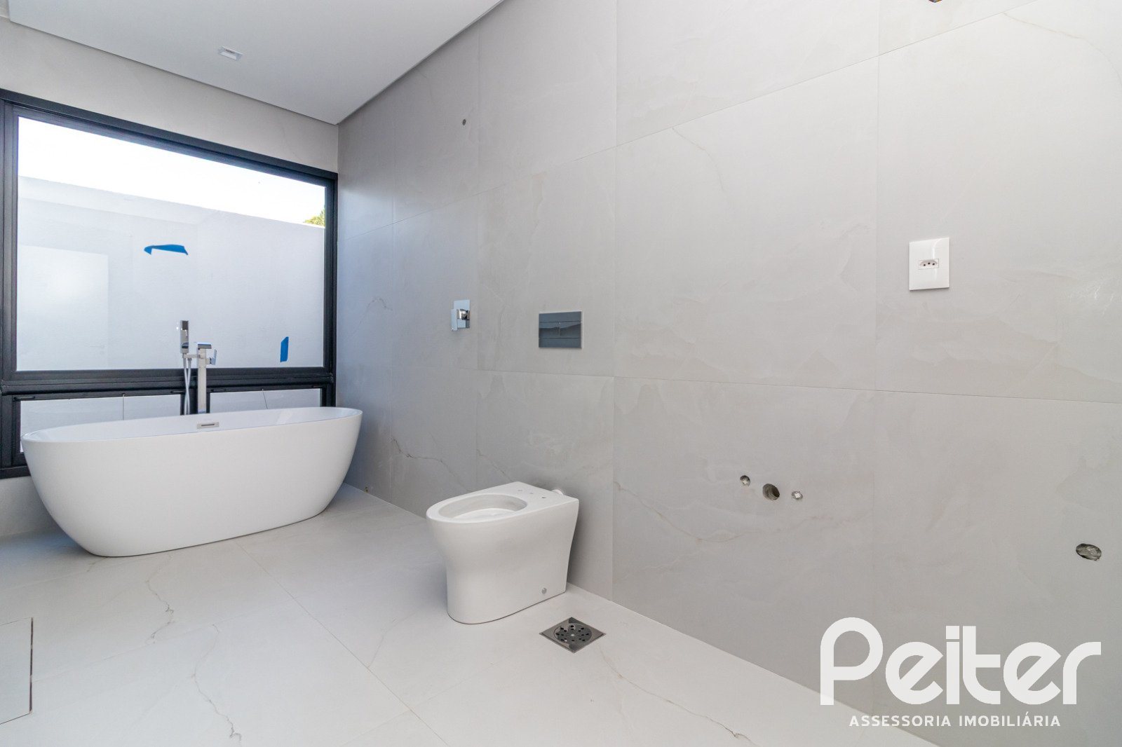 Na área íntima, são 04 suítes, sendo 03 voltadas para a fachada frontal da casa, todas com sacada. A suíte master é de tirar o fôlego, com espaço para closet e espaço penteadeira. O banheiro da suíte master conta com banheira de imersão, espaço para 02 cubas e 02 chuveiros.
